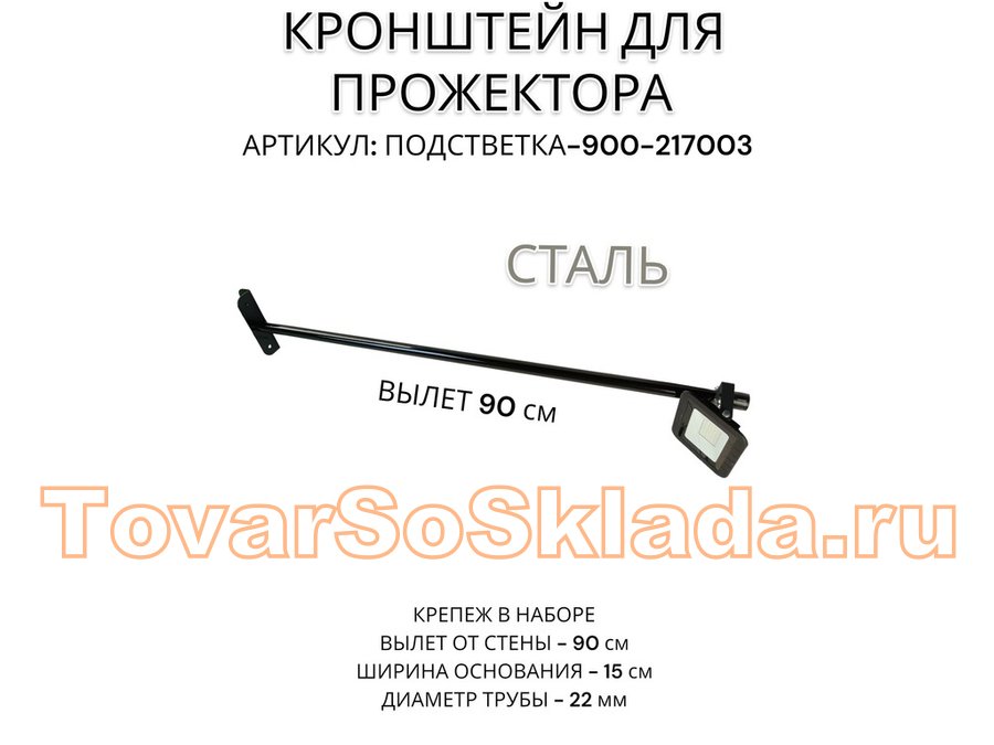 Кронштейн для прожектора "ПОДСВЕТКА- 900-217003" черный с уголком на рекламные щиты, вылет 0,9м