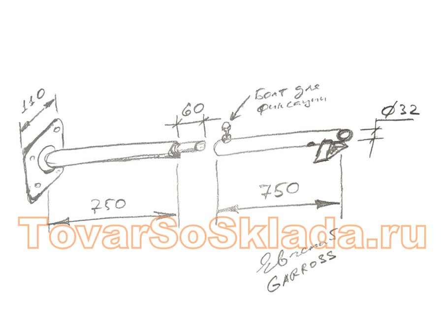 Кронштейн для прожектора, диаметр 32мм, вылет 1,5 метра "ХОП-217266" серый, к стене, разборный