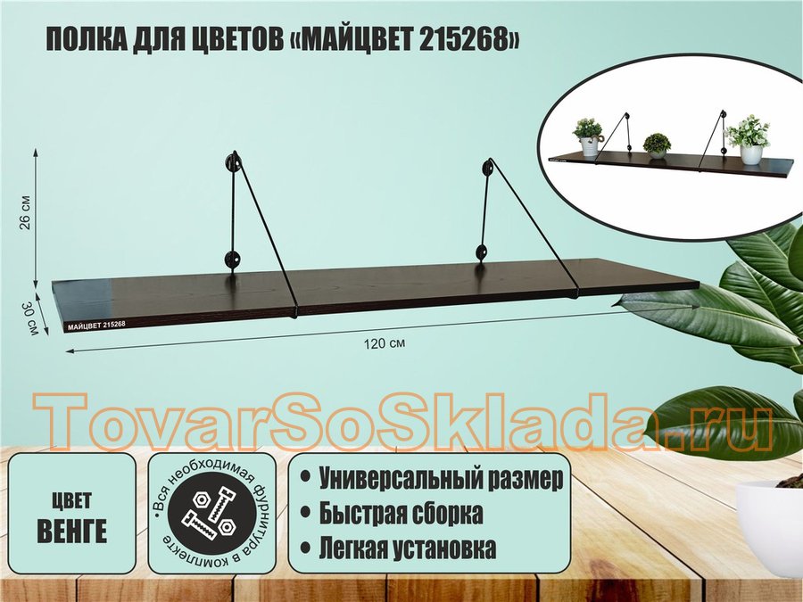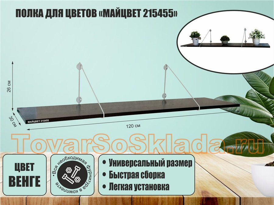 Полка для цветов "МАЙЦВЕТ 215477" высота 26 см размер 120х30 см белый и венге
