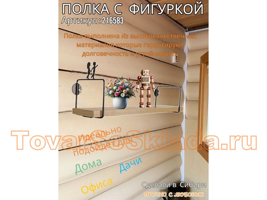 Полка с фигуркой девочки с мальчиком "ABILOVE-216583" размер 10х40см ,черный ,дуб сонома