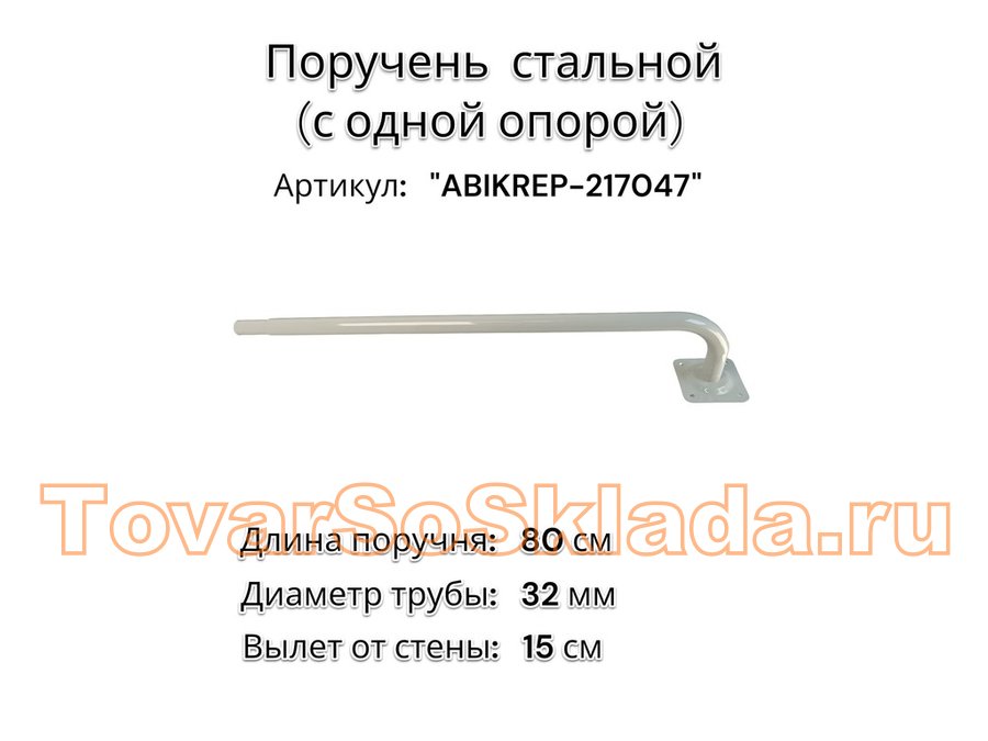 Поручень пристенный для зданий, длина 80см вылет 8см "ABIKREP-217044" серый, 1 опора, диаметр 32мм
