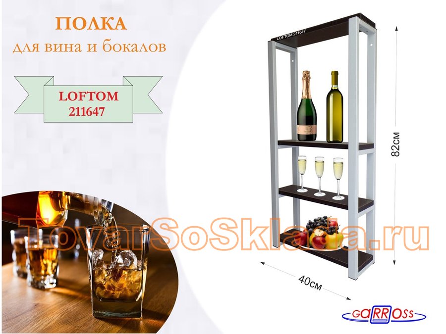 Полка для вина и бокалов, высота 82см, 4 уровня, размер полки 10х120см, серая "LOFTOM 211659"салатов