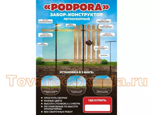 "PODPORA" (без сайтов) рекламная листовка,забор-конструктор PODPORA, формат А4, 115гр, мелованная