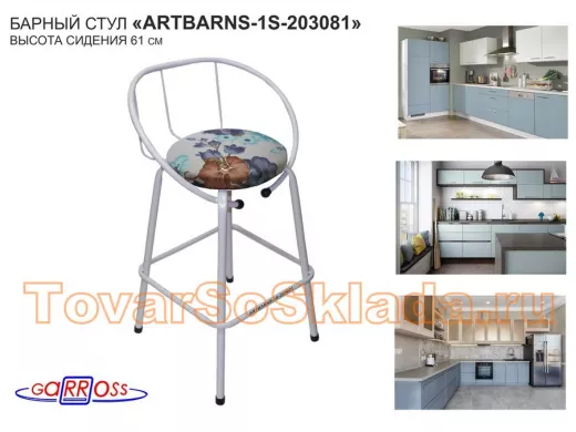 "ARTBARNS 1S-195614" cтул барный, табурет, спинка, высота 0,61м, 22мм,черные ножки/Аута 34 ткань