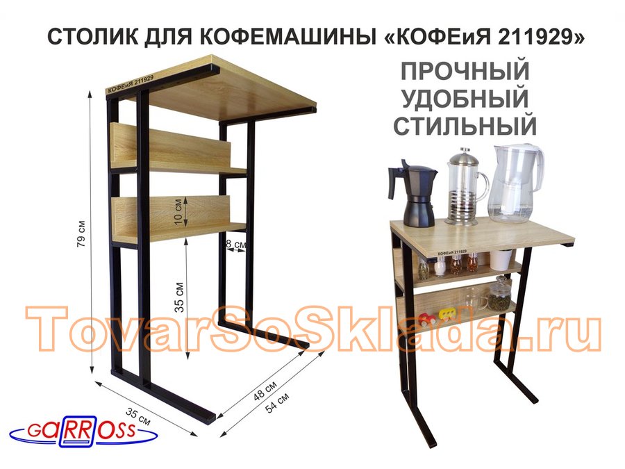Столик для кофемашины "КОФЕиЯ 211929" высота 79 см с двумя полками для стаканов и банок ,черный, дуб - 211929
