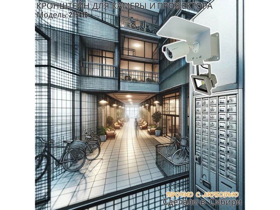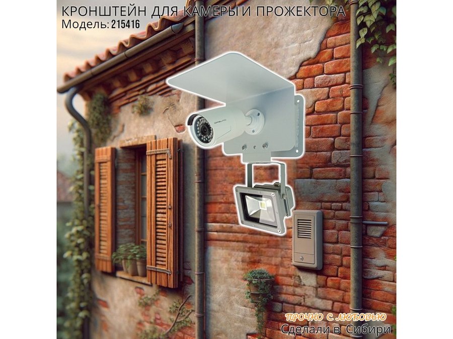 Современное надёжное решение для монтажа видеокамеры и прожектора на стену здания.