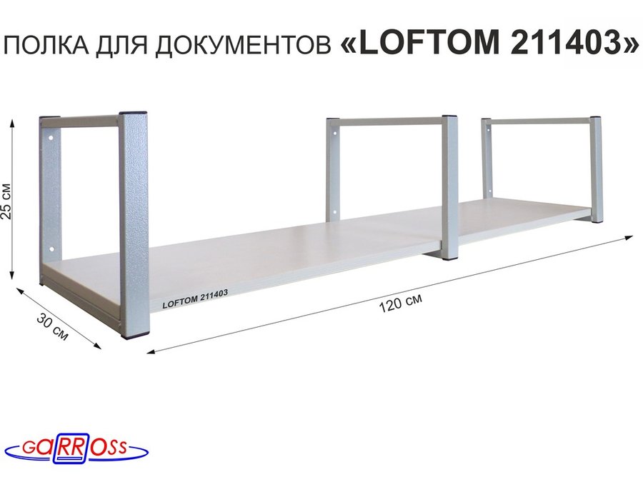 Полка для документов к стене, высота 25см, размер 30х120см, серая "LOFTOM 211403" сосна