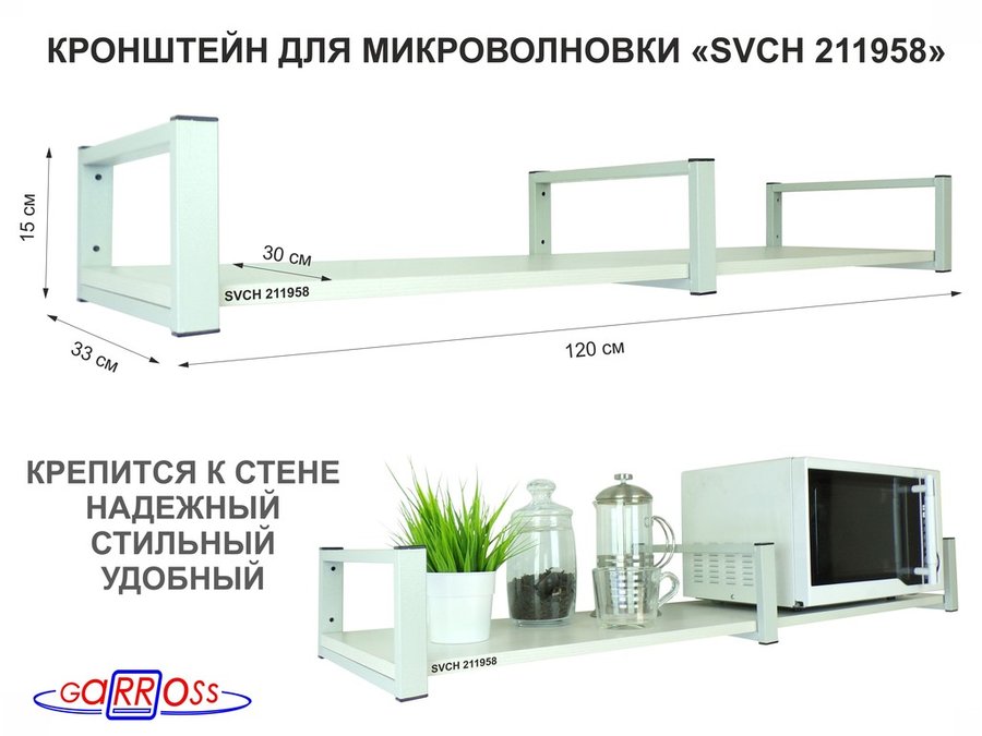 Кронштейн для микроволновки, 15см серый, 1 полка 30х120см "SVCH 211958" под микроволновую печь,сосна