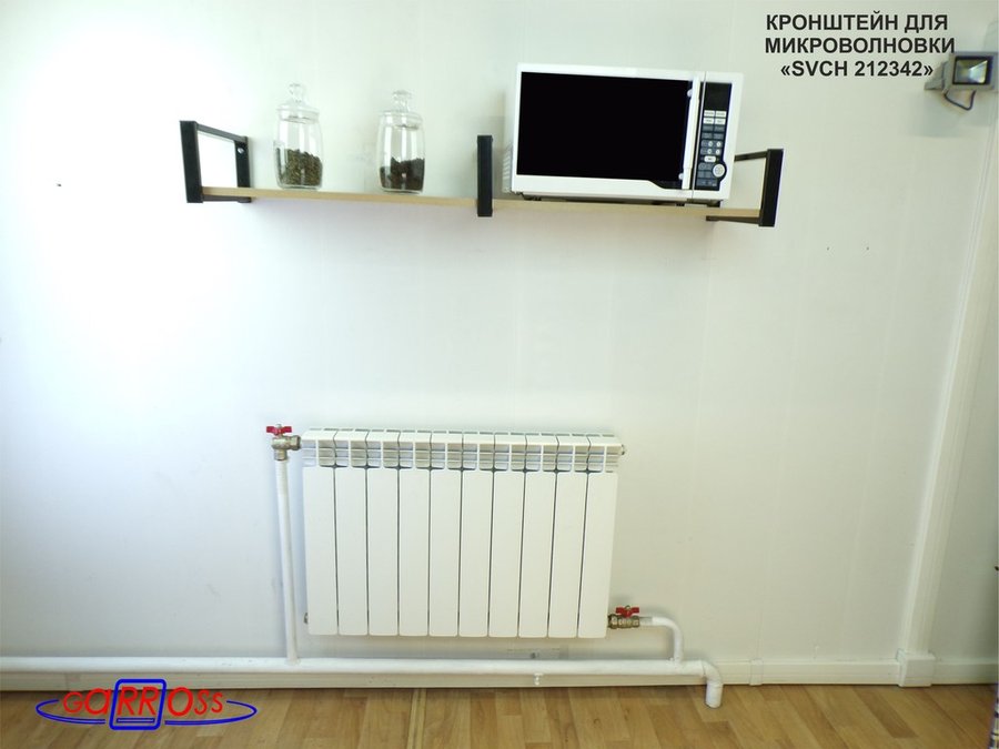 Кронштейн для микроволновки, 15см черный, 1 полка 30х120см "SVCH 212342" под микроволновую печь, дуб