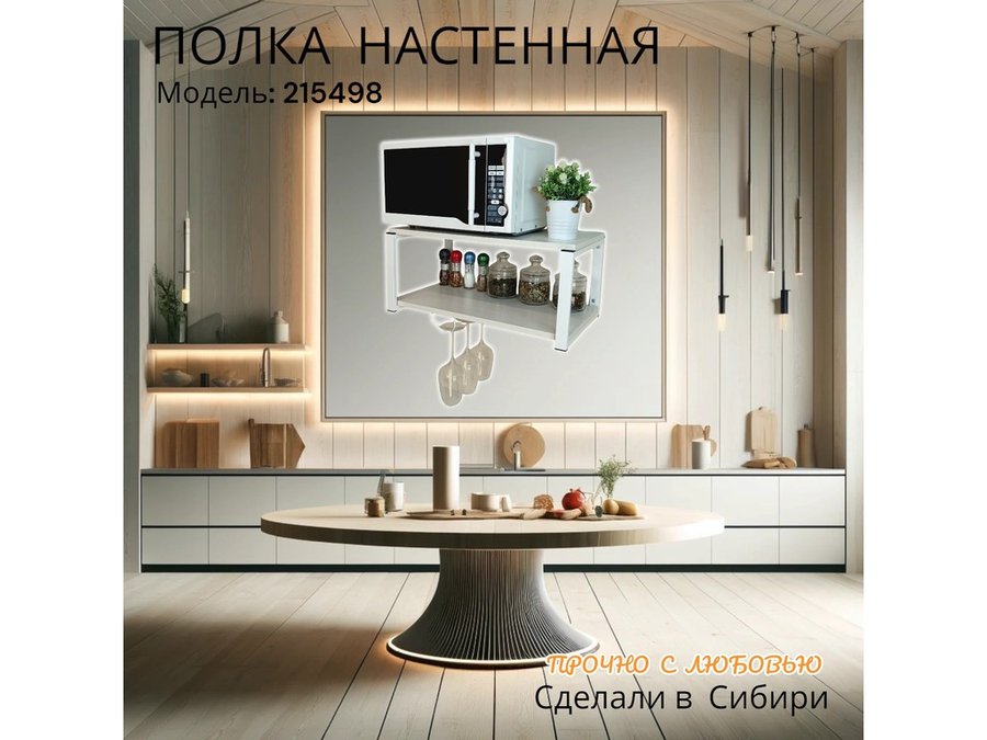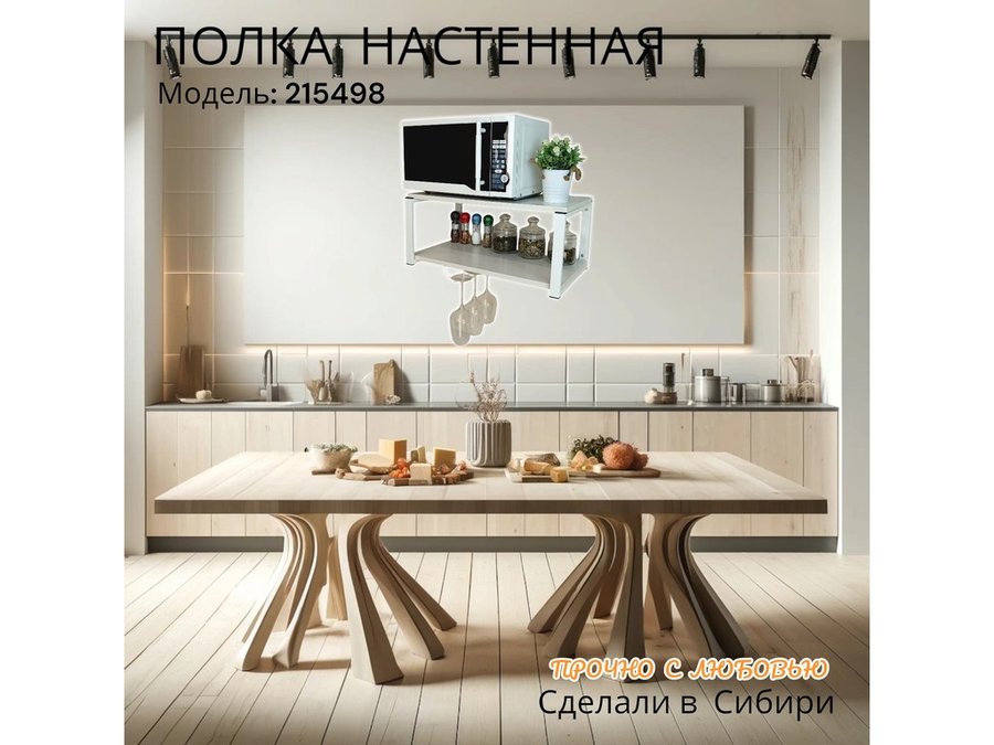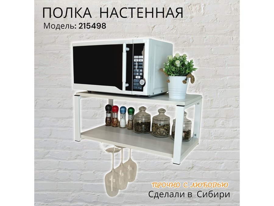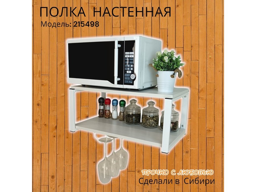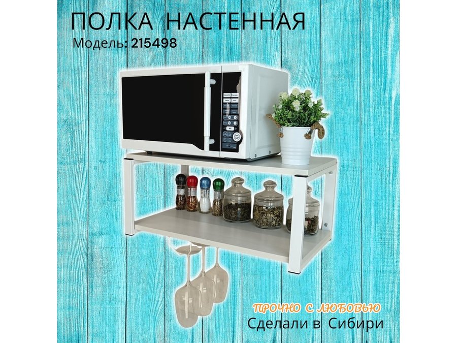 Полка c одним бокалодержателем для микроволновки "SVCH 215498" 60х30см, белая, сосна выбеленная