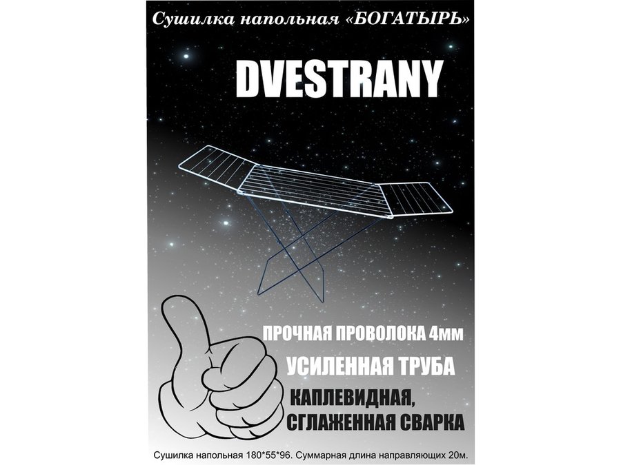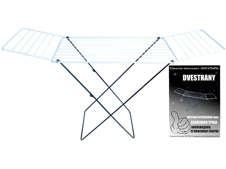 - "БОГАТЫРЬ" DVESTRANY сушилка напольная ЧЁРНО-БЕЛАЯ 20 метров, предназначена для сушки белья