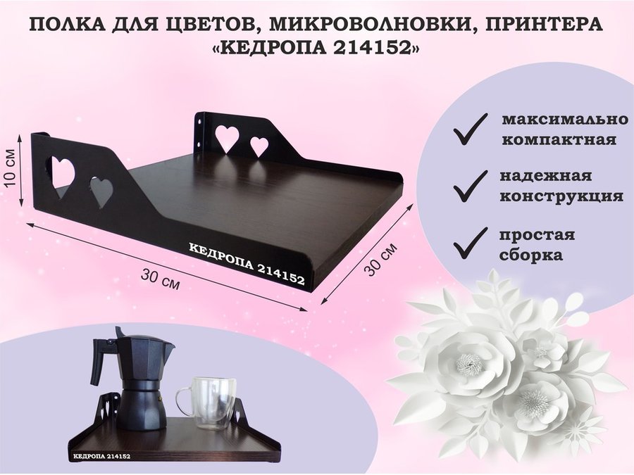 Полка для цветов, микроволновки, принтера "КЕДРОПА-214152" размер 30х30х10 см, венге, сердце