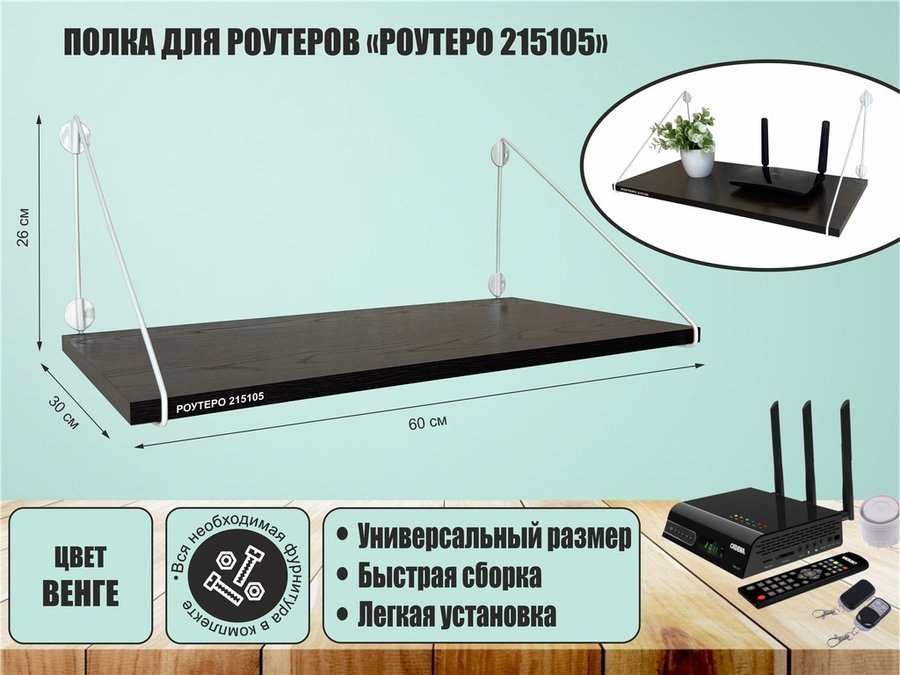 Полка для роутеров "РОУТЕРО 215105" высота 26 см размер 60х30 см белый и венге