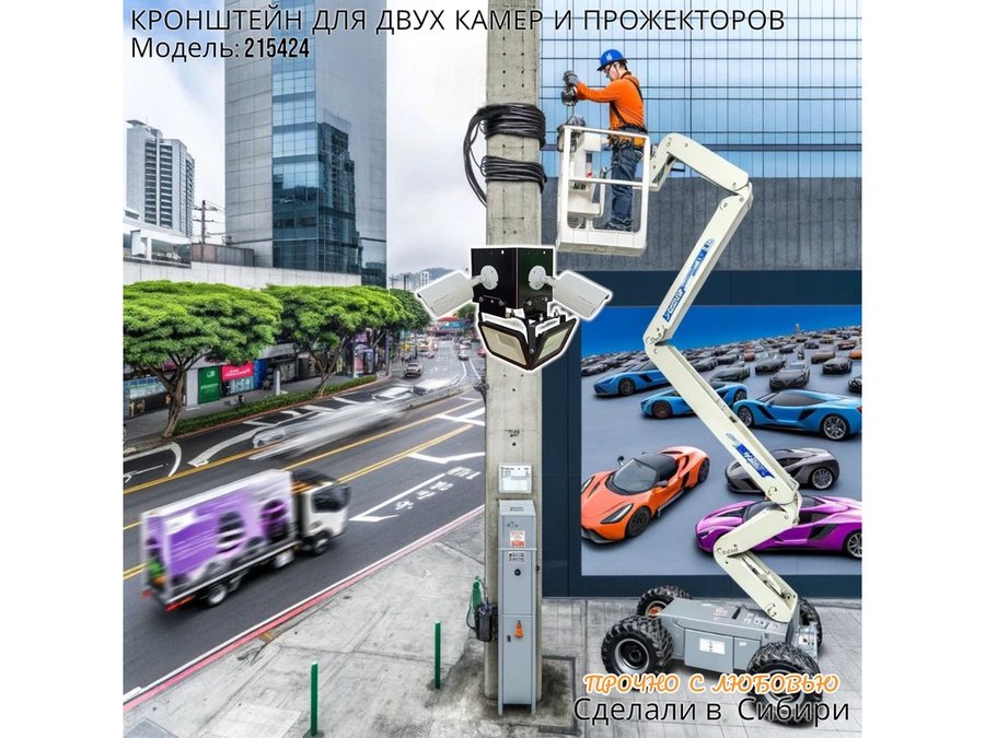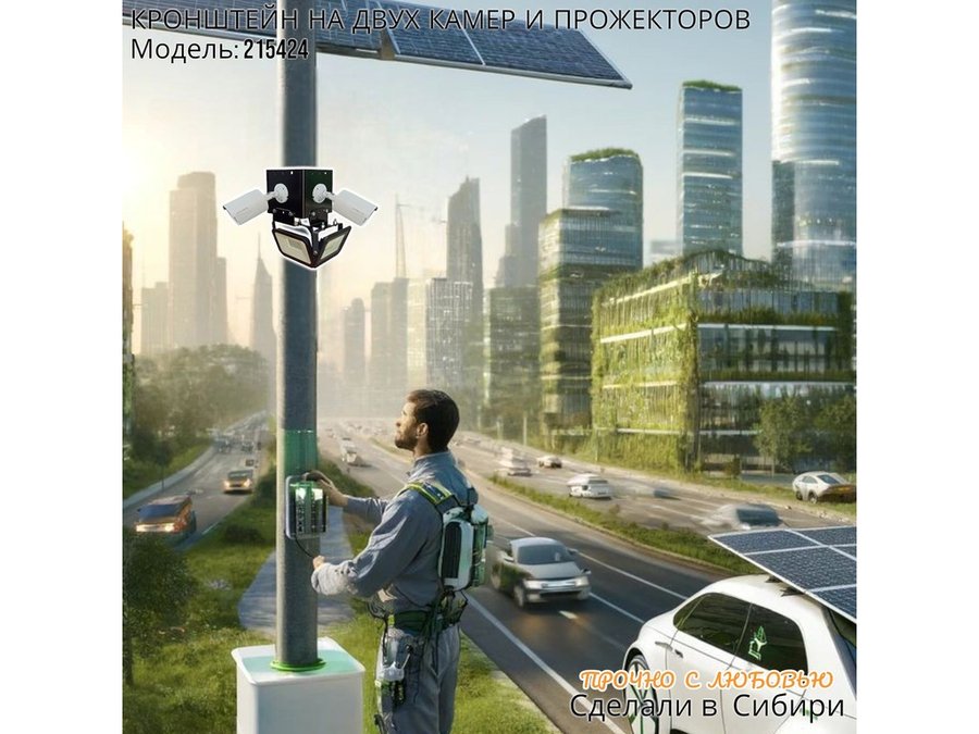 - Кронштейн для двух камер и прожектора, крепится при помощи СИП ленты монтажной на квадратный или круглый столб.