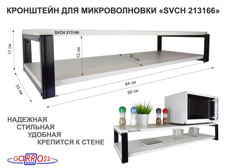 Кронштейн для микроволновки, 17см чёрный "SVCH 213166" под микроволновку,две полки 90х30, сосна