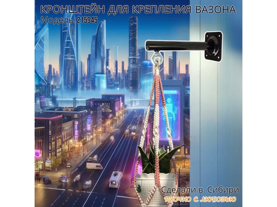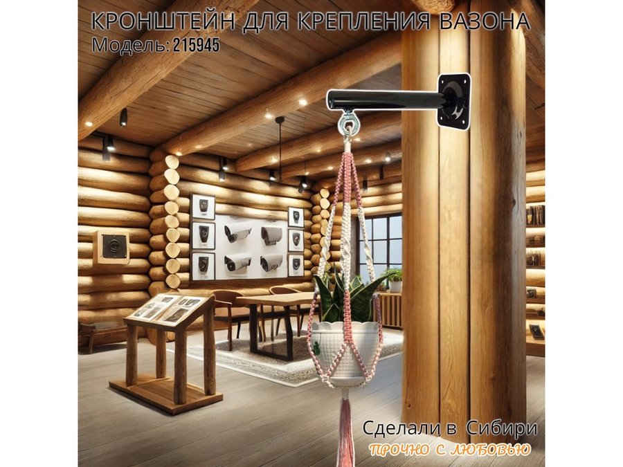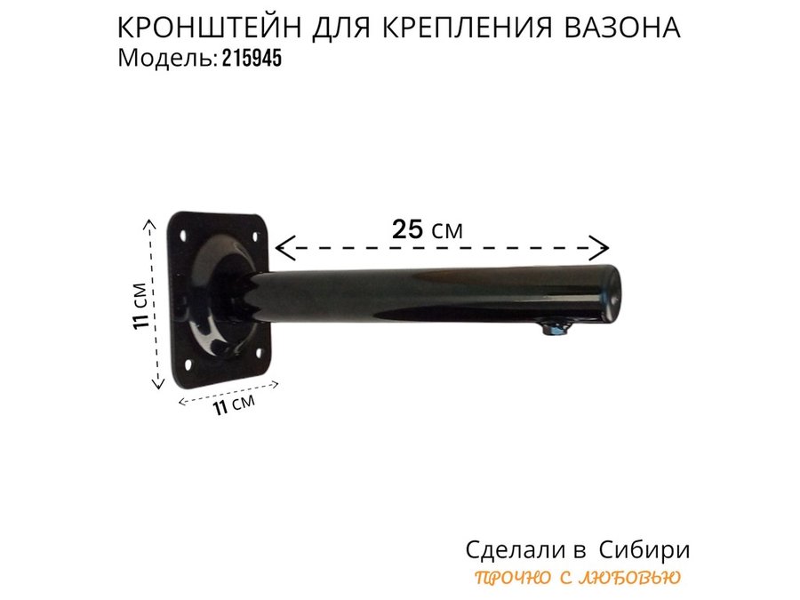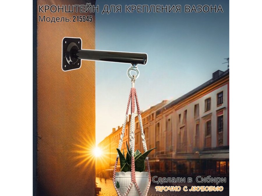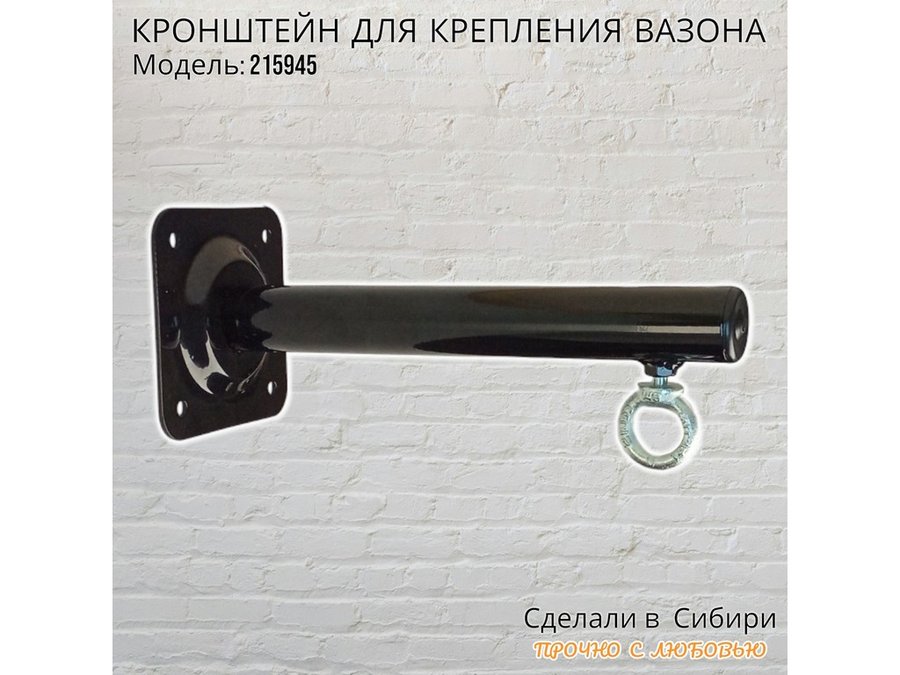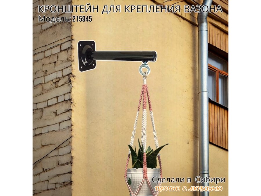 Кронштейн для крепления кашпо, вазона на стене угол 90гр вылет 25см "ПРОСЕКИНО-215945" сталь, черный