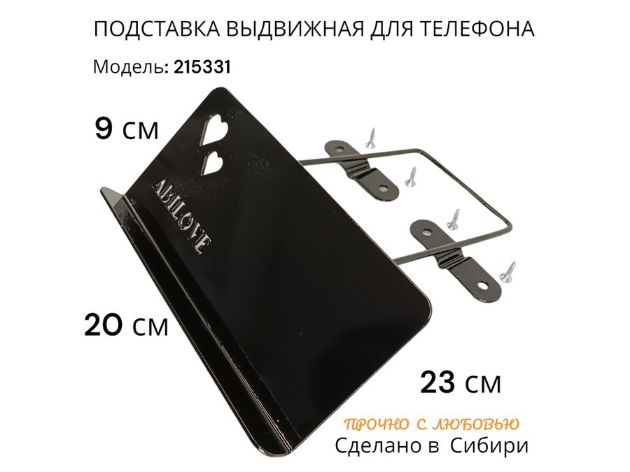Полка для телефона стальной прочный выдвижной держатель "ABILOVE 215331" черный 9х20х23см