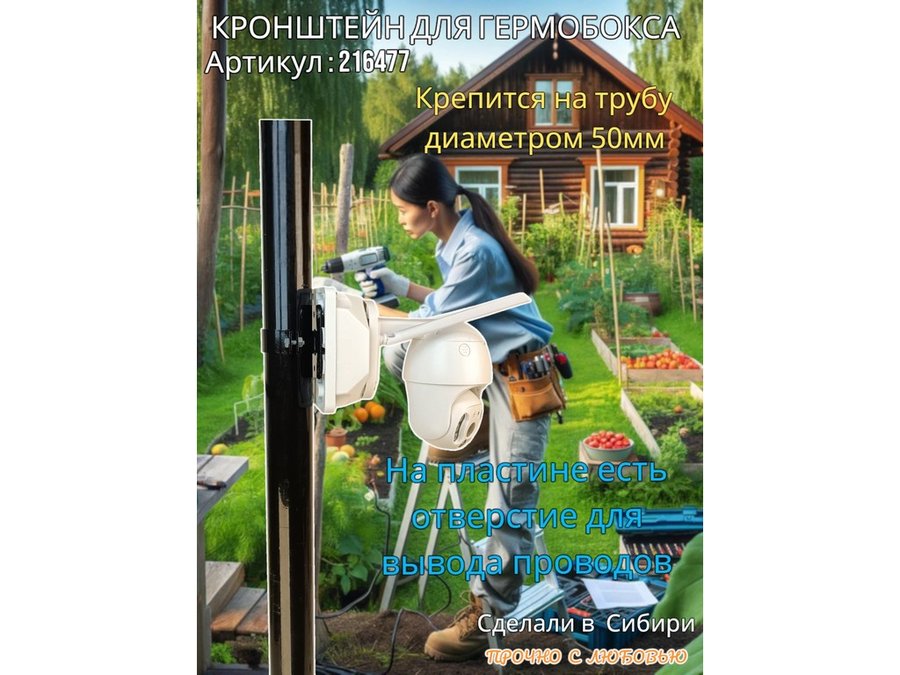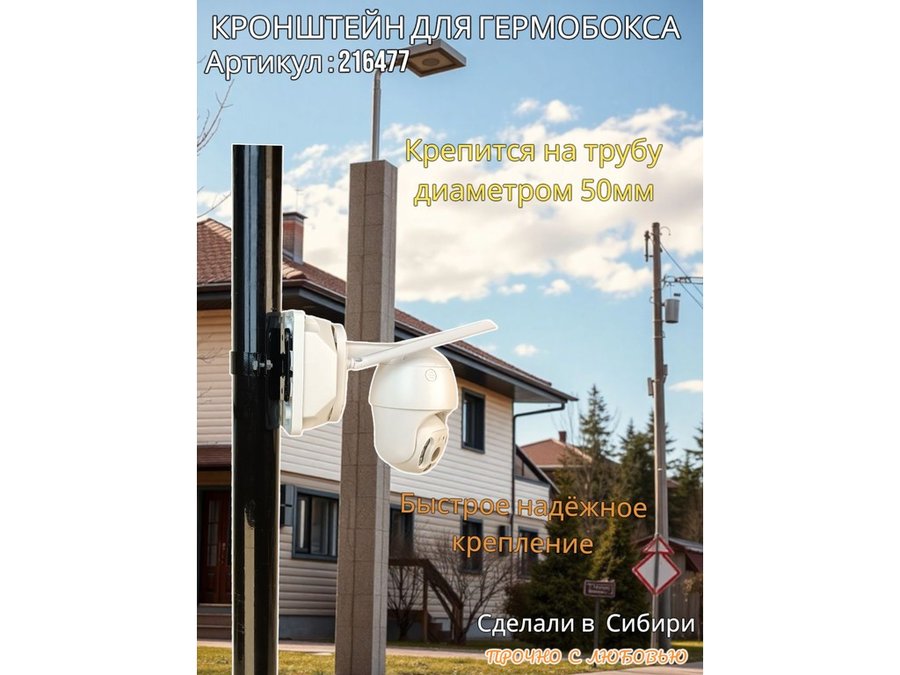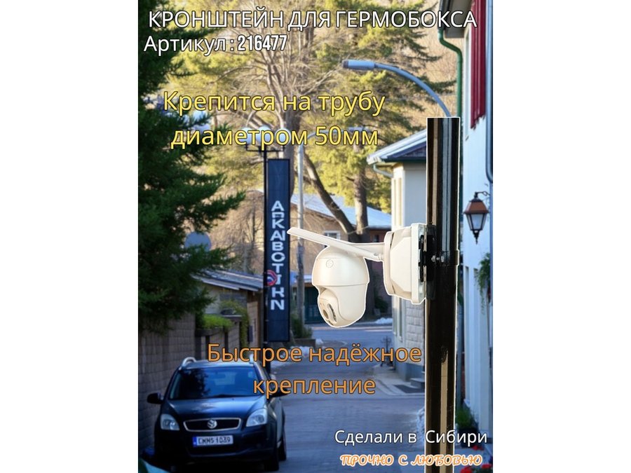 Кронштейн позволяет быстро зафиксировать гермобокс с видеокамерой на трубу.