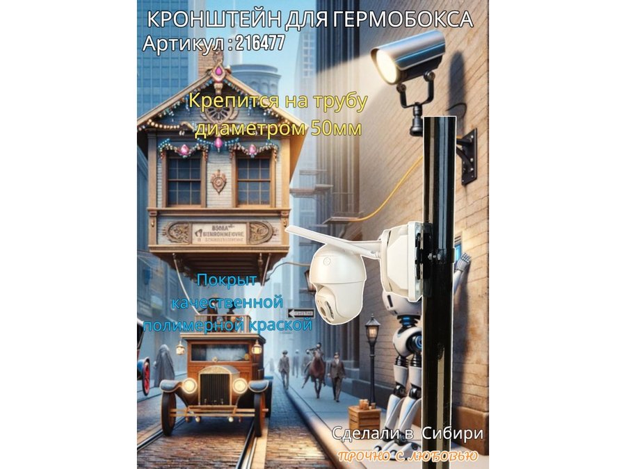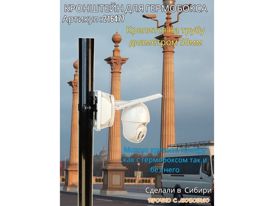 Универсальный усиленный кронштейн предназначен для крепления гермобоксов,коробок с видеокамерой, дорожных знаков , электрических щитков на трубе диаметром 50мм.