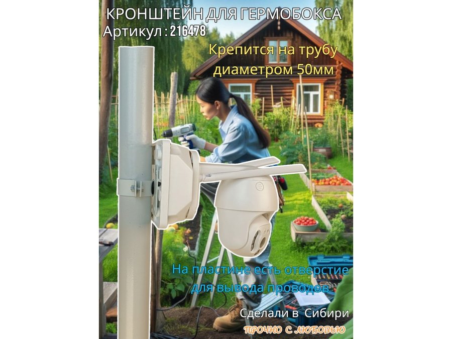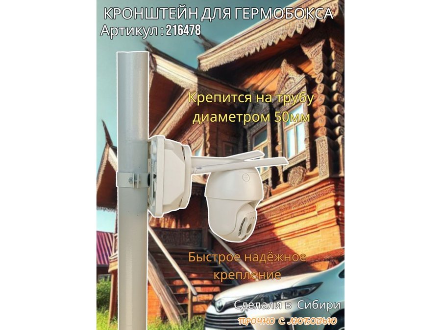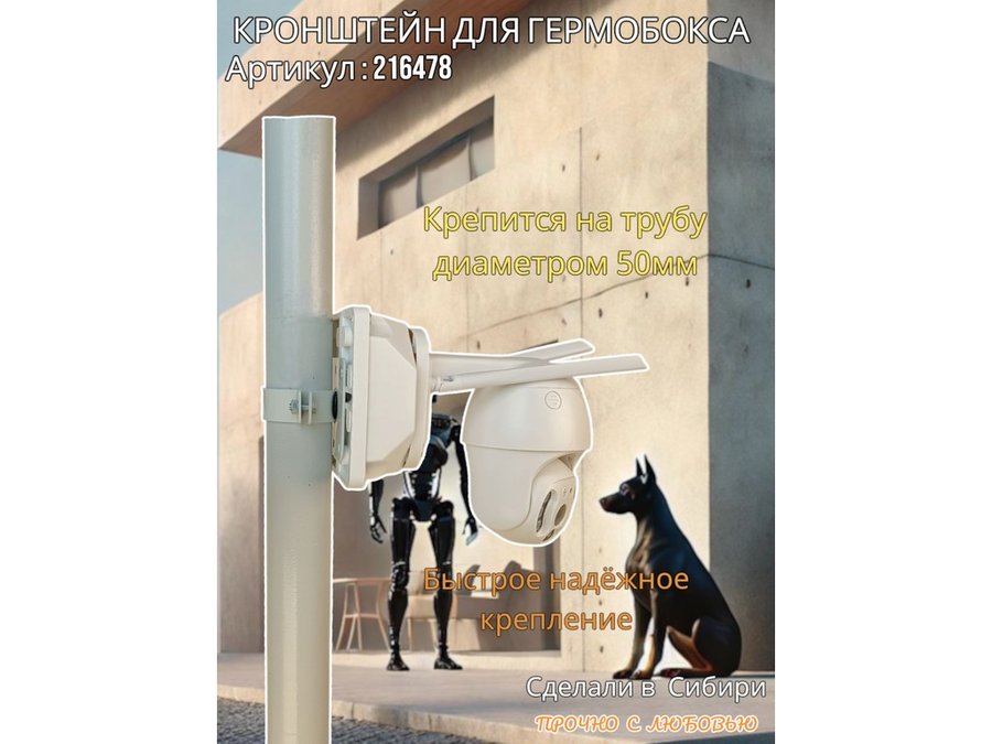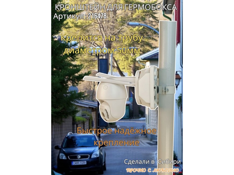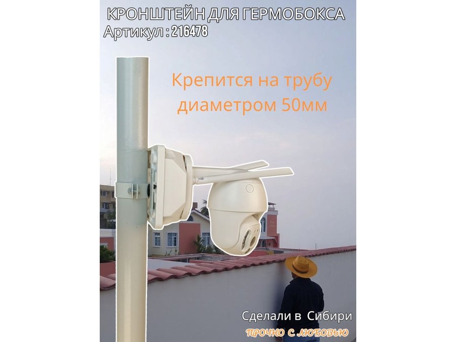 Кронштейн позволяет быстро зафиксировать гермобокс с видеокамерой на трубу.