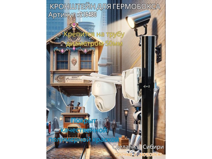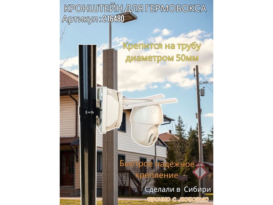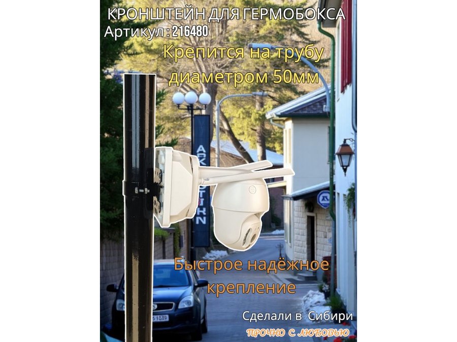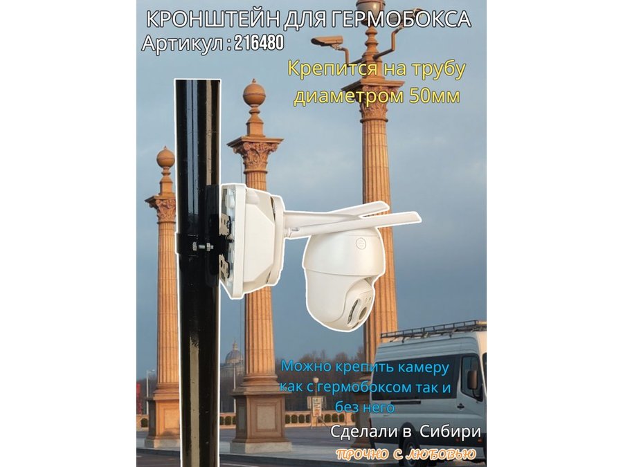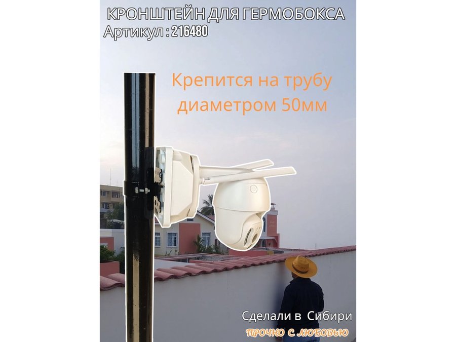 - Кронштейн позволяет быстро зафиксировать гермобокс с видеокамерой на трубу.