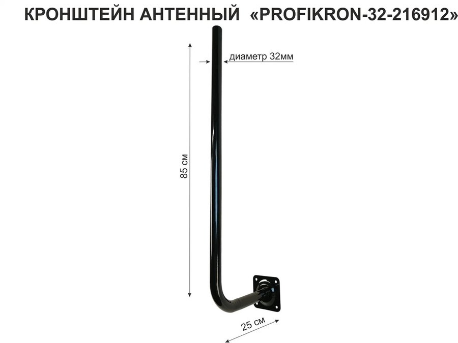Кронштейн антенный, вылет 0,25м, вверх 0,85м "PROFIKRON-32-216912" черный, диаметр 32мм