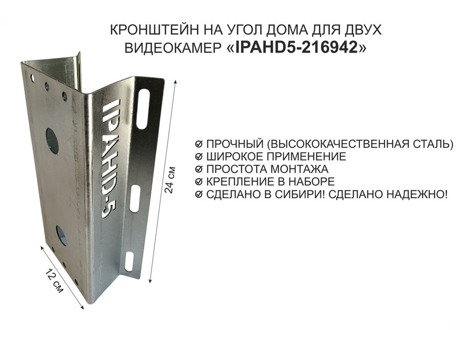 Кронштейн на угол дома для двух камер видеонаблюдения, 2 отверстия "IPAHD5-216942" оцинкован,24х12см