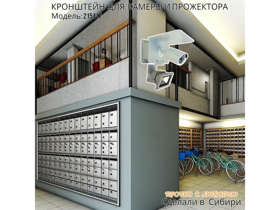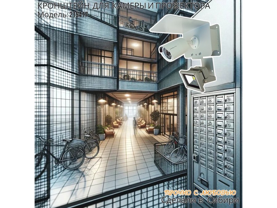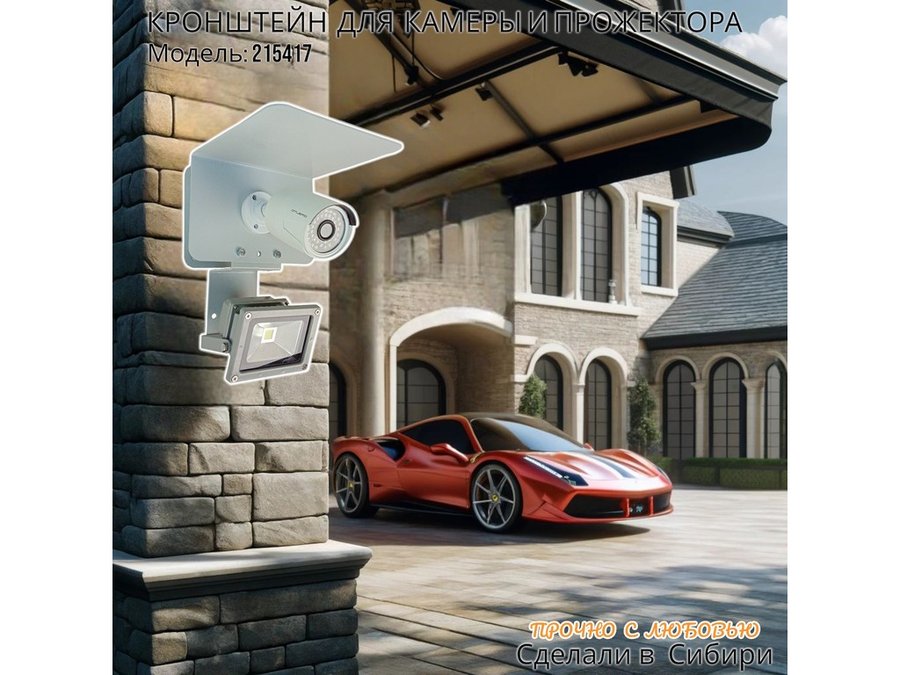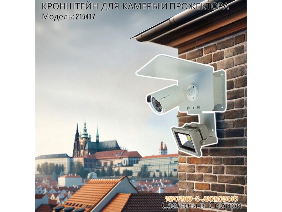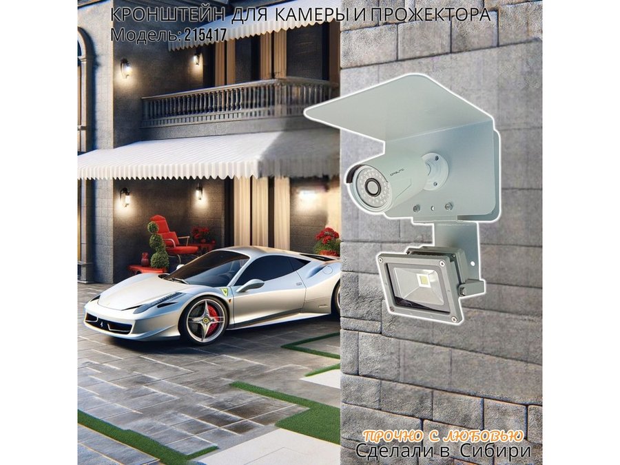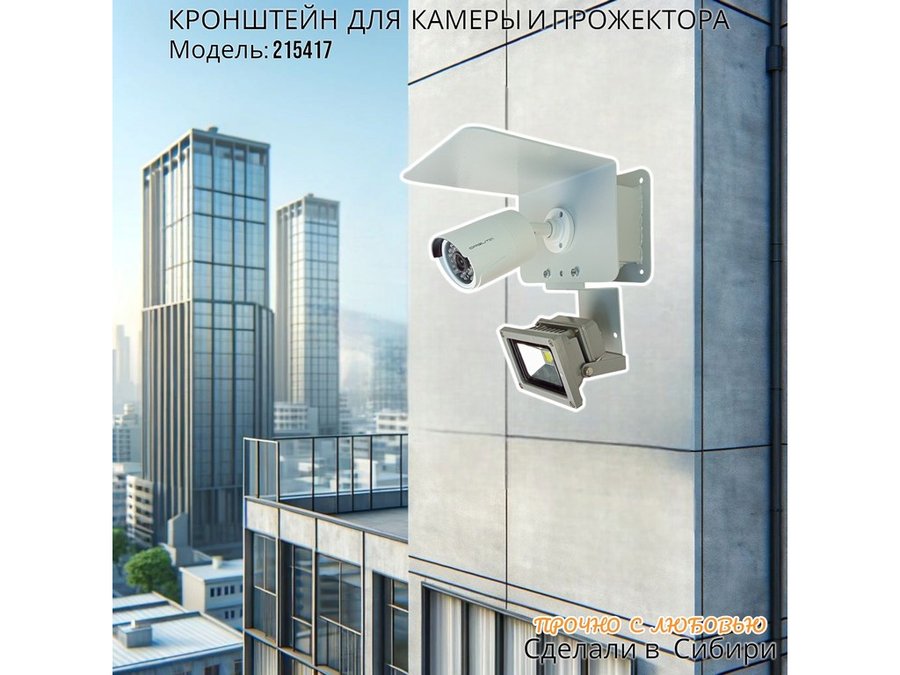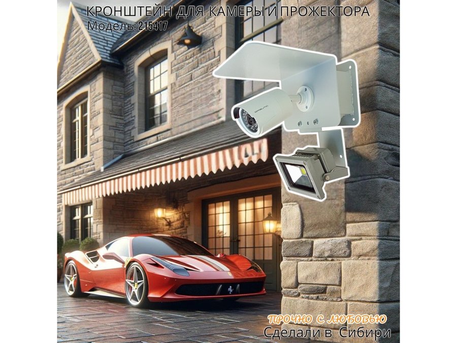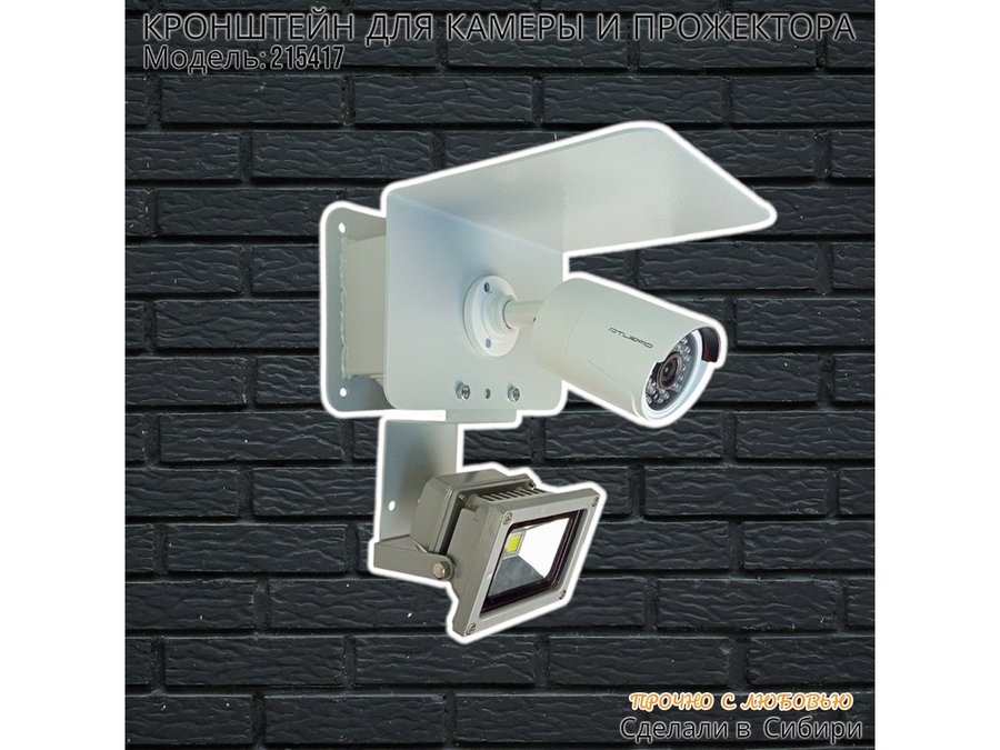 Современное надёжное решение для монтажа видеокамеры и прожектора на стену здания.