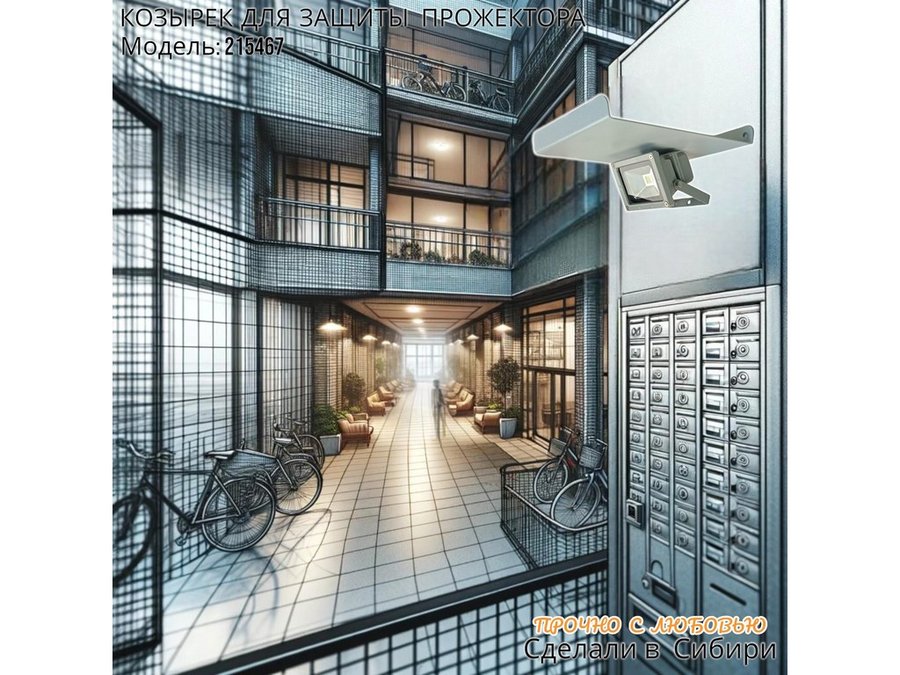 Козырёк для защиты прожектора от дождя с желобком "POHER-215467" серый 24 х 24 см сталь 2 мм