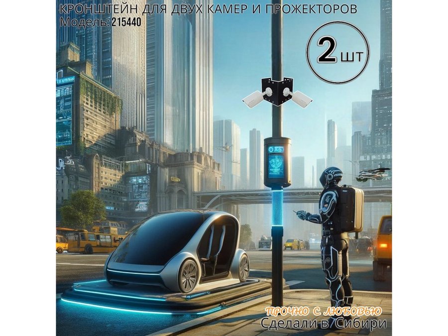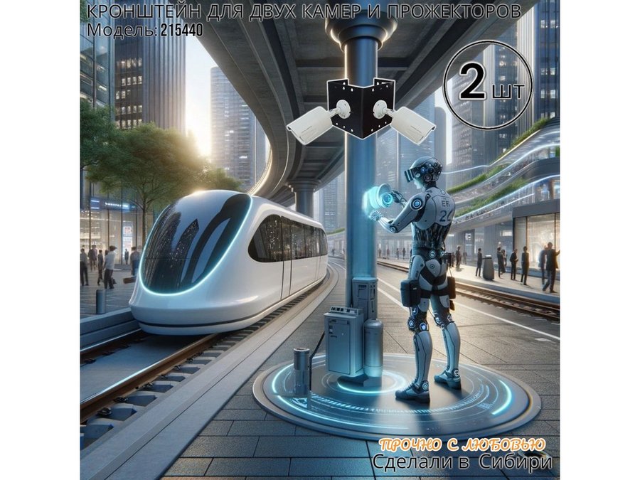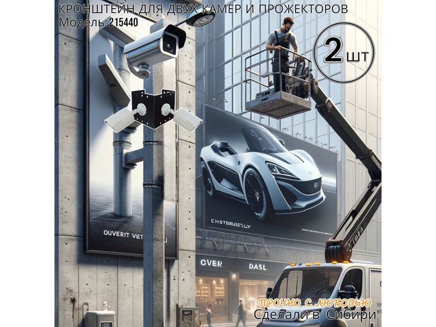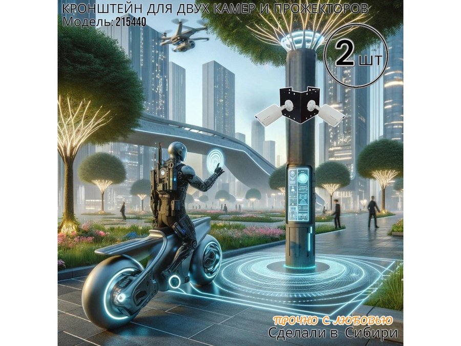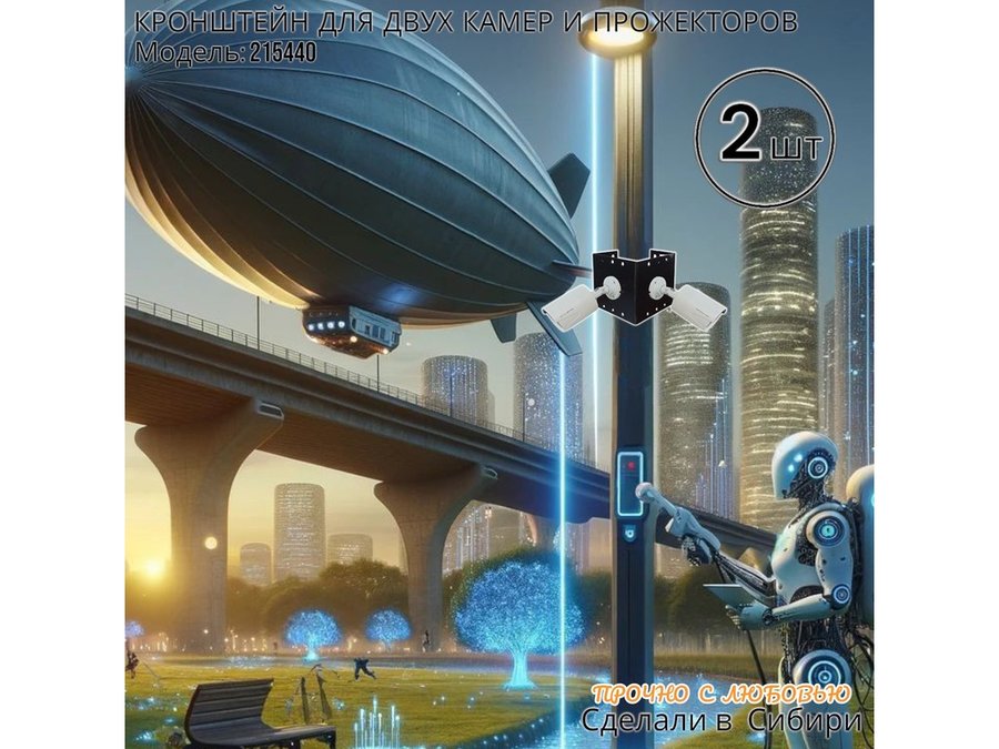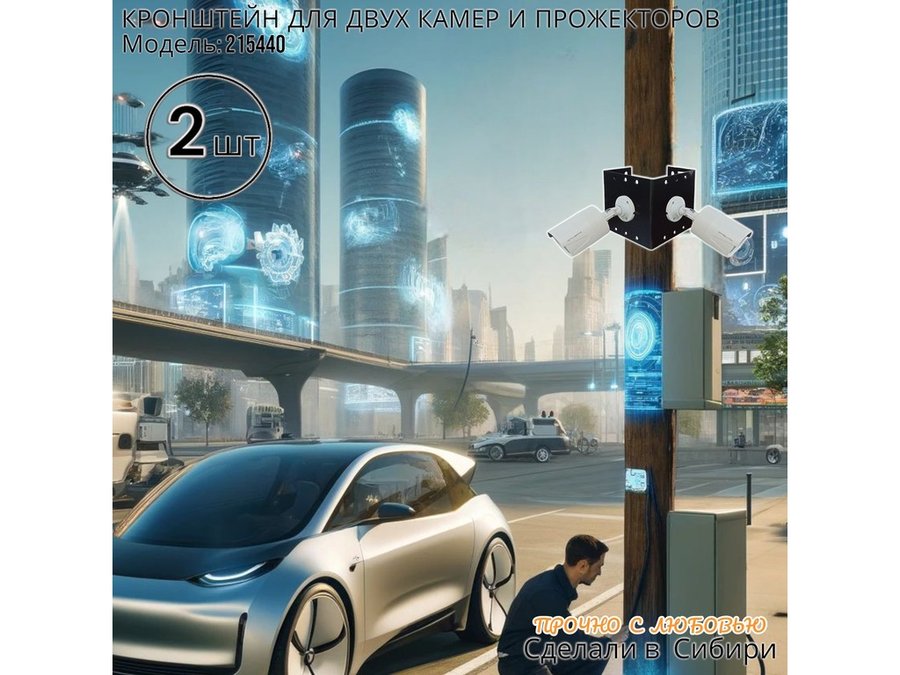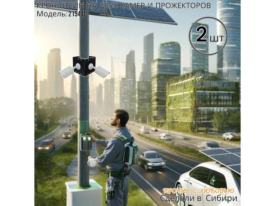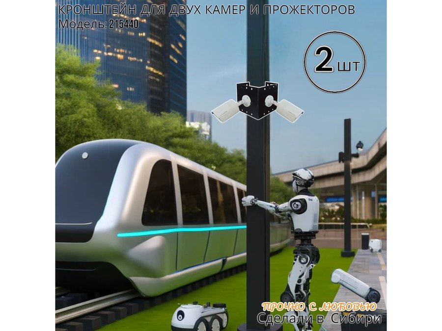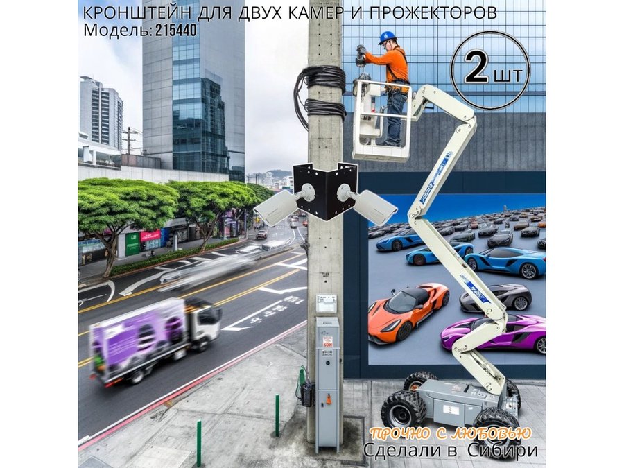 - Кронштейн для двух камер и прожектора, крепится при помощи СИП ленты монтажной на квадратный или круглый столб.
