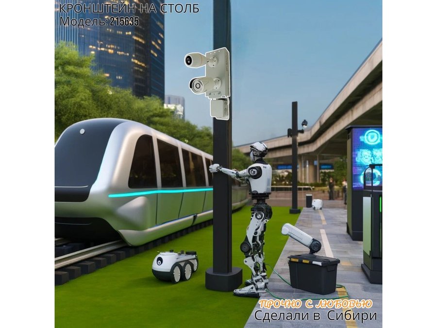 Кронштейн для двух камер и прожектора на столб с пластиной для гермокоробки серый IPAHD-5-215635