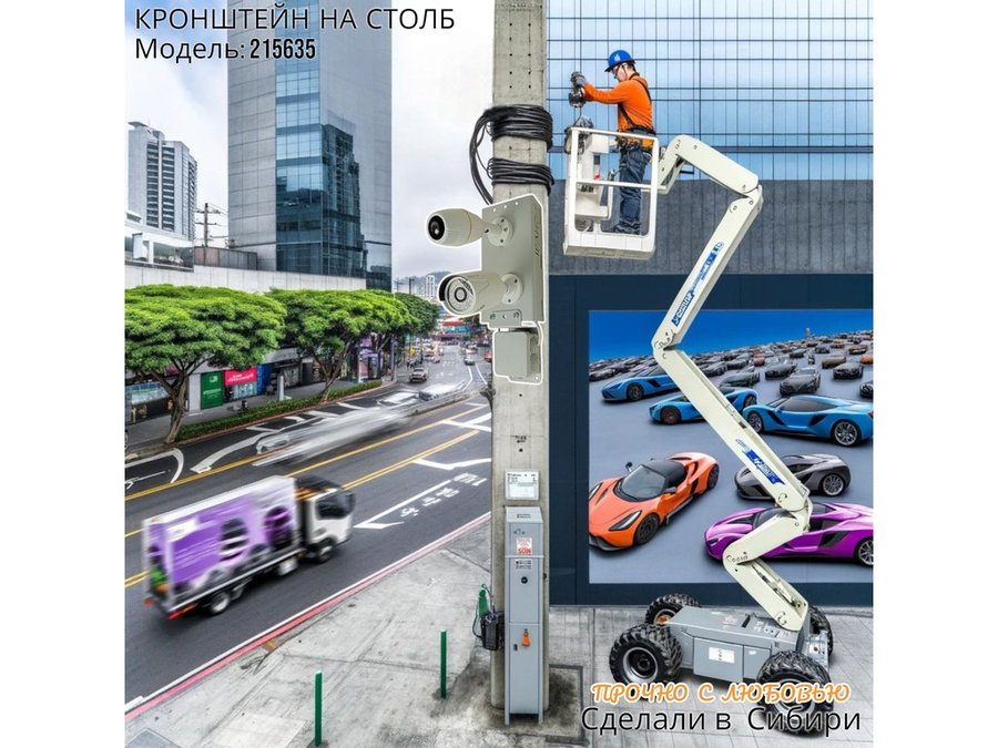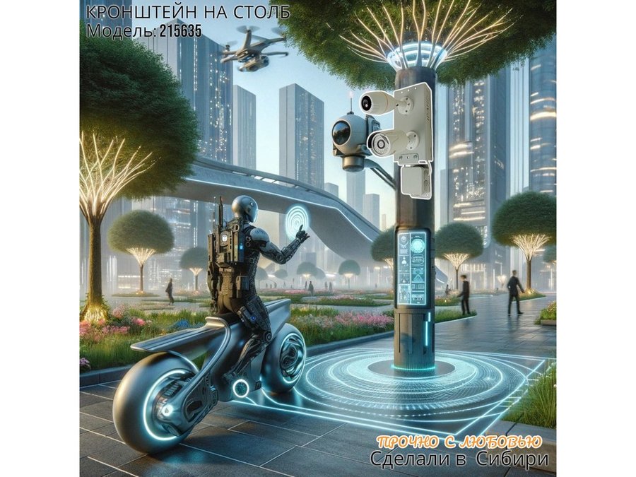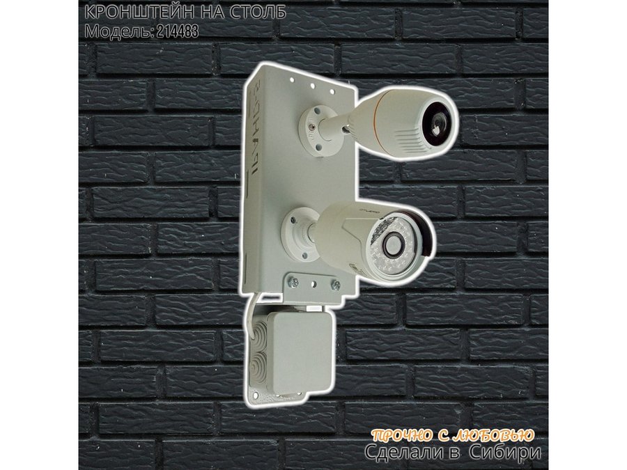 Кронштейн с пластиной для монтажной коробки для крепления двух камер и прожектора на столб при помощи СИП - ленты или хомутов