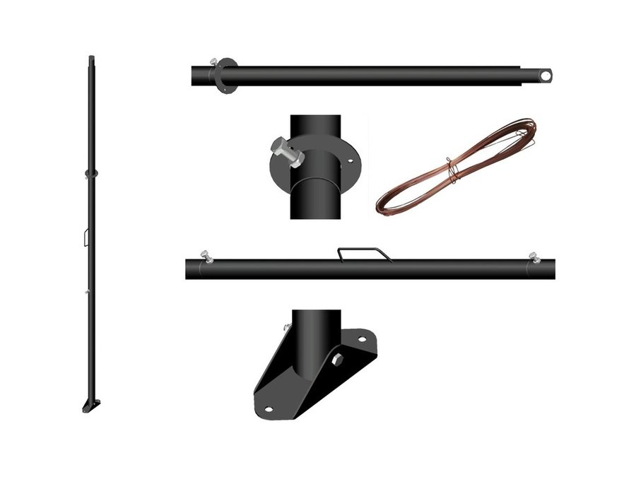 - Мачта укомплетована подпятником и проволочными растяжками, покрытыми медью