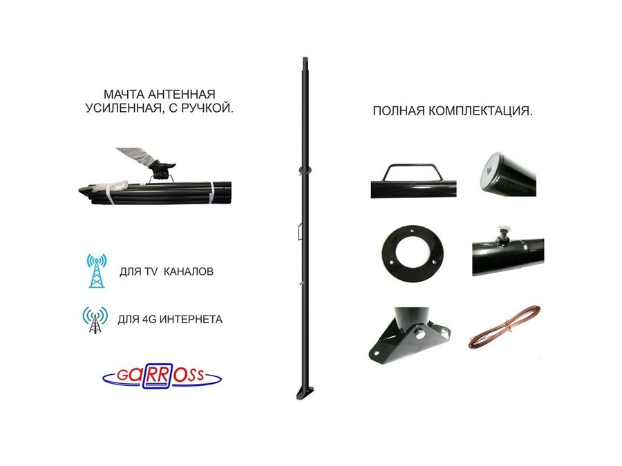 - Мачта изготовлена с ипользованием надёжной стальной трубы отечественного производства