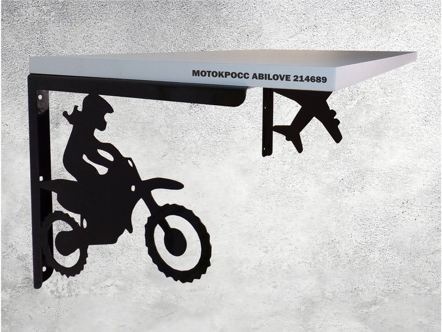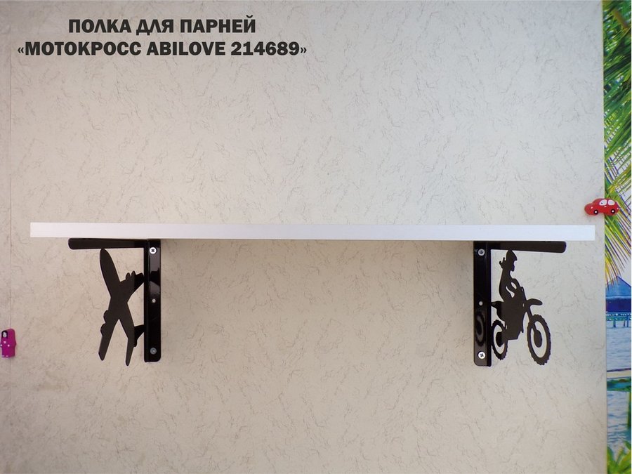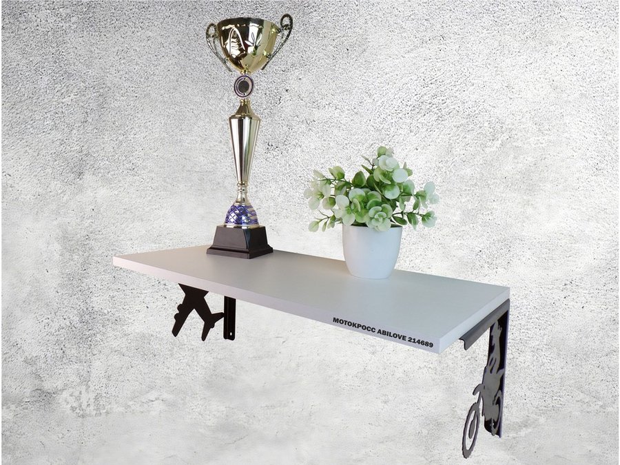 Полка для парней "МОТОКРОСС ABILOVE-214689" для кубков и аксессуаров, белая, 30х60см