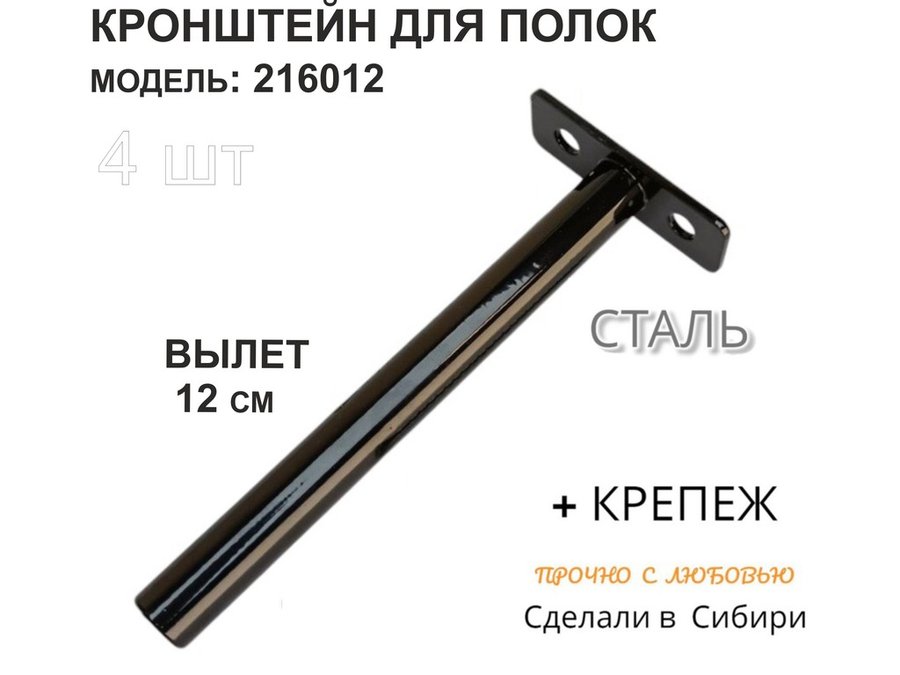 Кронштейн для скрытого крепления полок,12х120мм, черный, в наборе 4шт "SVORKAMAX-216012" без полки