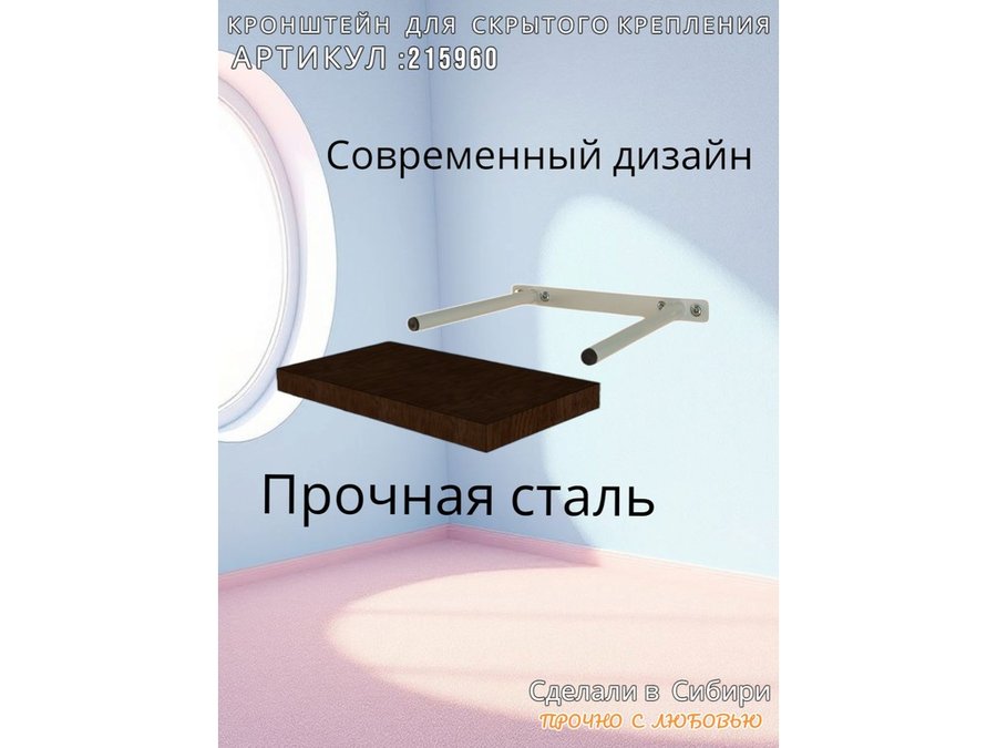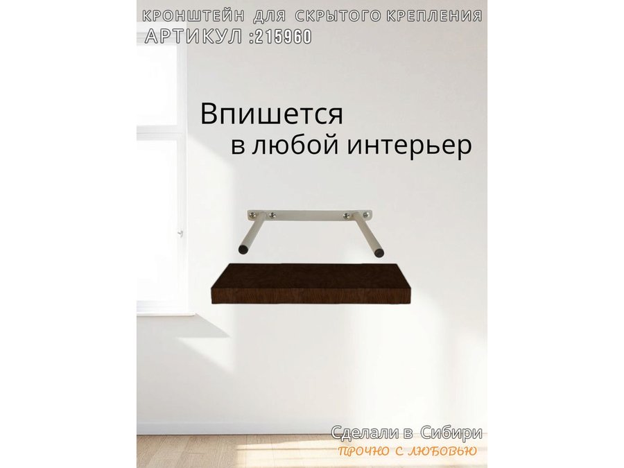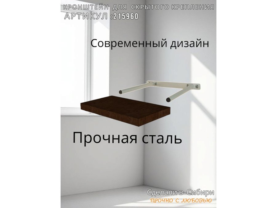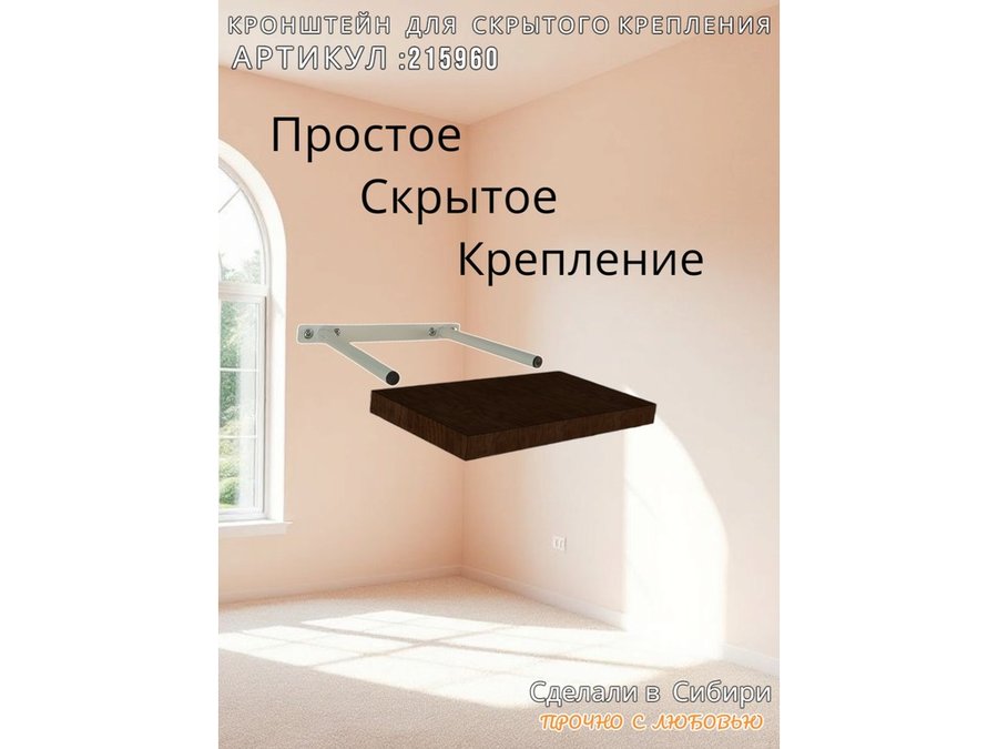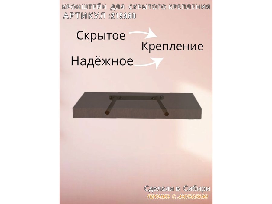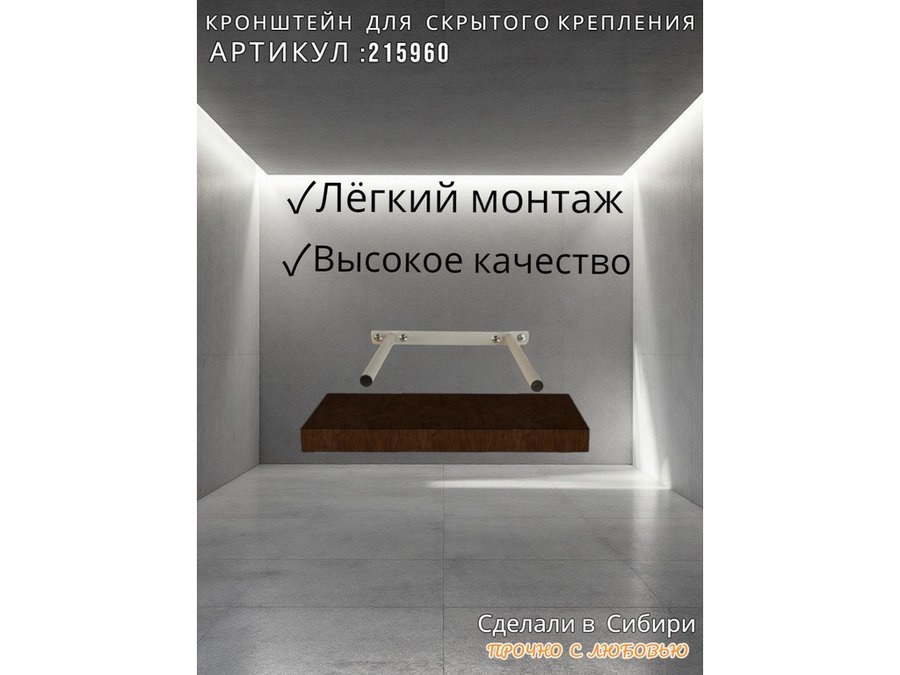 - Кронштейн предназначен для скрытого крепления полок, изготовленных из различных материалов: МДФ, ДСП, дерево, пластик.