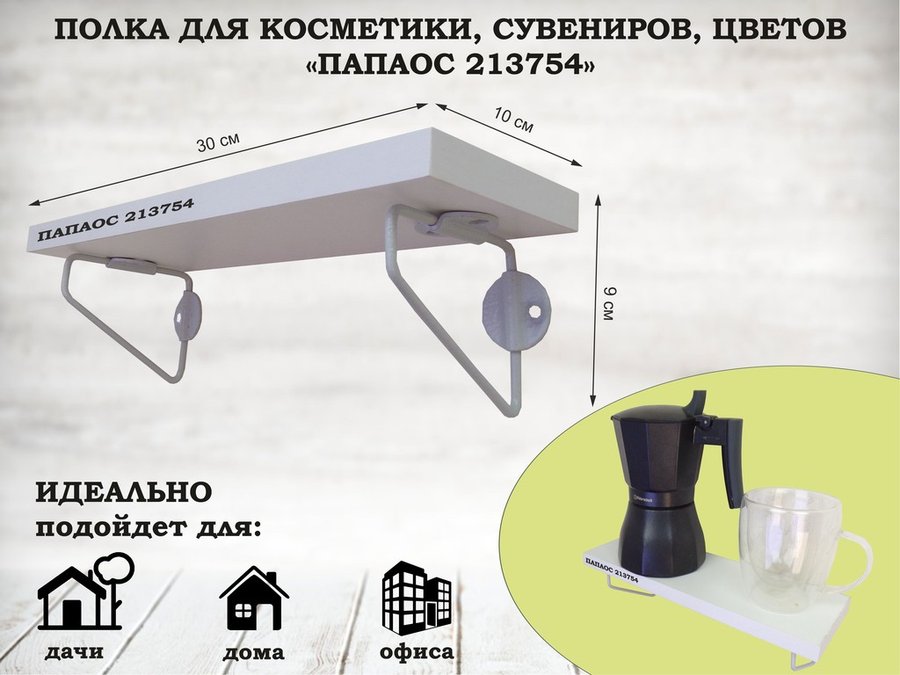 - Полка имеет надёжную конструкцию и может выдержать до 10 кг