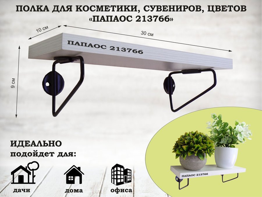 Полка для косметики, сувениров, цветов, 30х10 см, высота 9 см, черный "ПАПАОС 213766" сосна