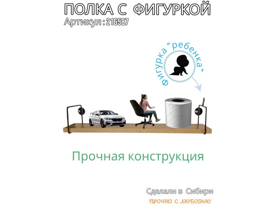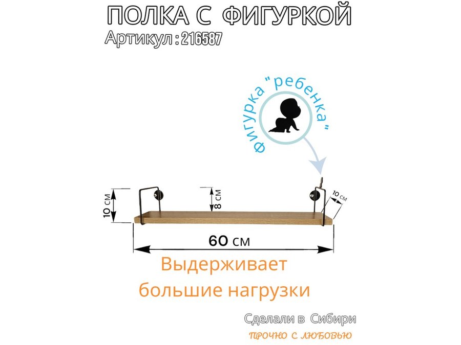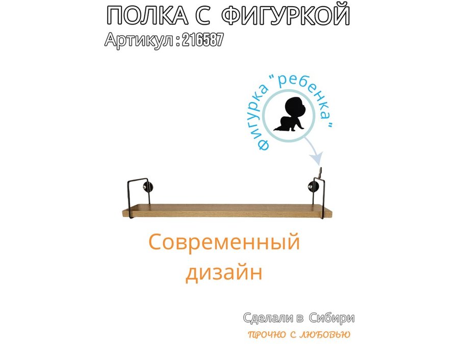 Полка с фигуркой ребенка "ABILOVE-216587" размер 10х60см ,черный ,дуб сонома