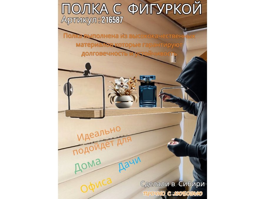 Интересная полка с фигуркой, позволит разнообразить интерьер, сделать его непохожим, уникальным, запоминающимся.