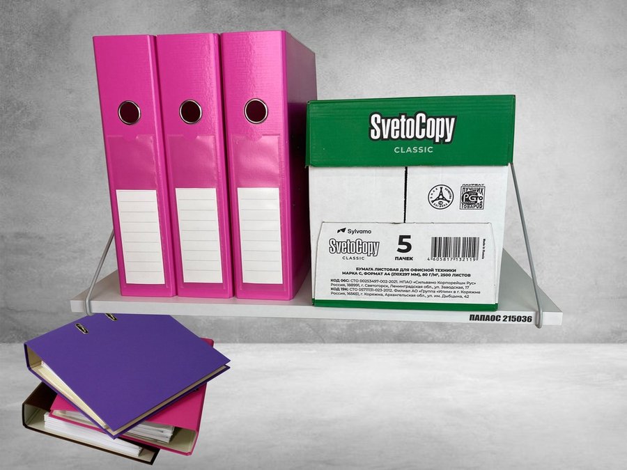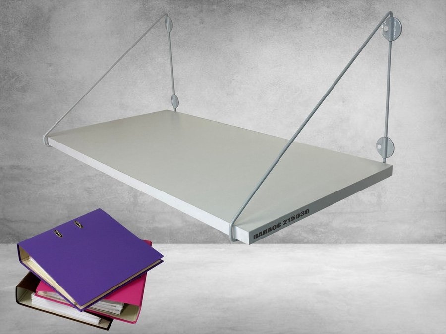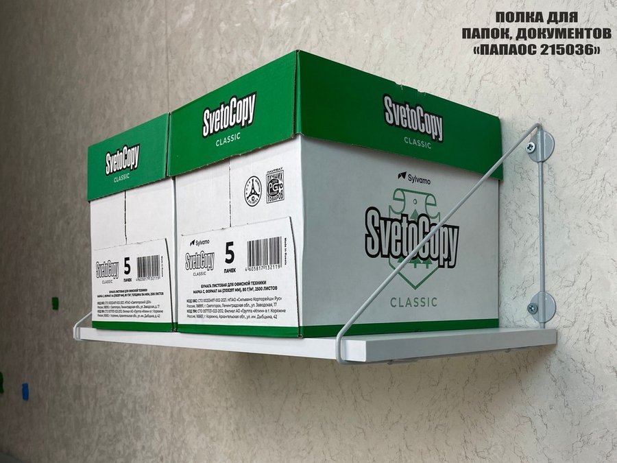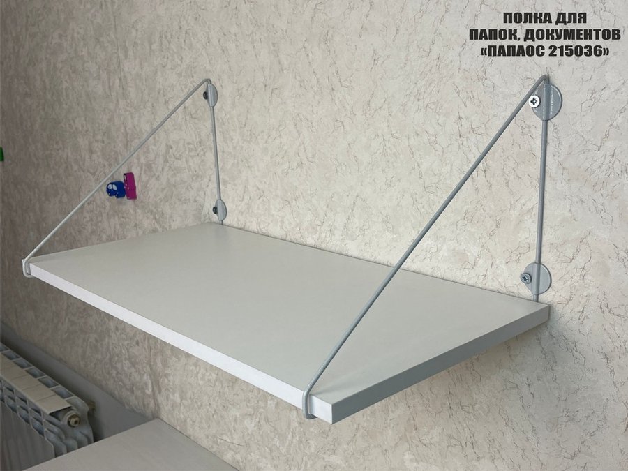 - Полка надежно крепится к стене при помощи анкеров или шурупов с дюбелями, на ней можно разместить папки, документы,бумагу и многое другое