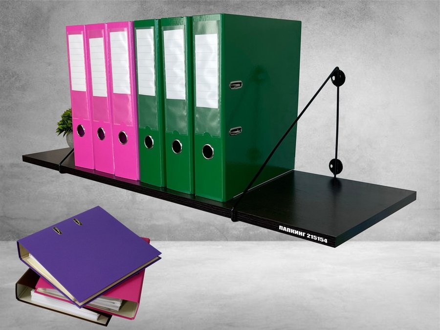 Полка для папок и документов "ПАПКИНГ 215154" высота 26 см размер 90x30 черный и венге