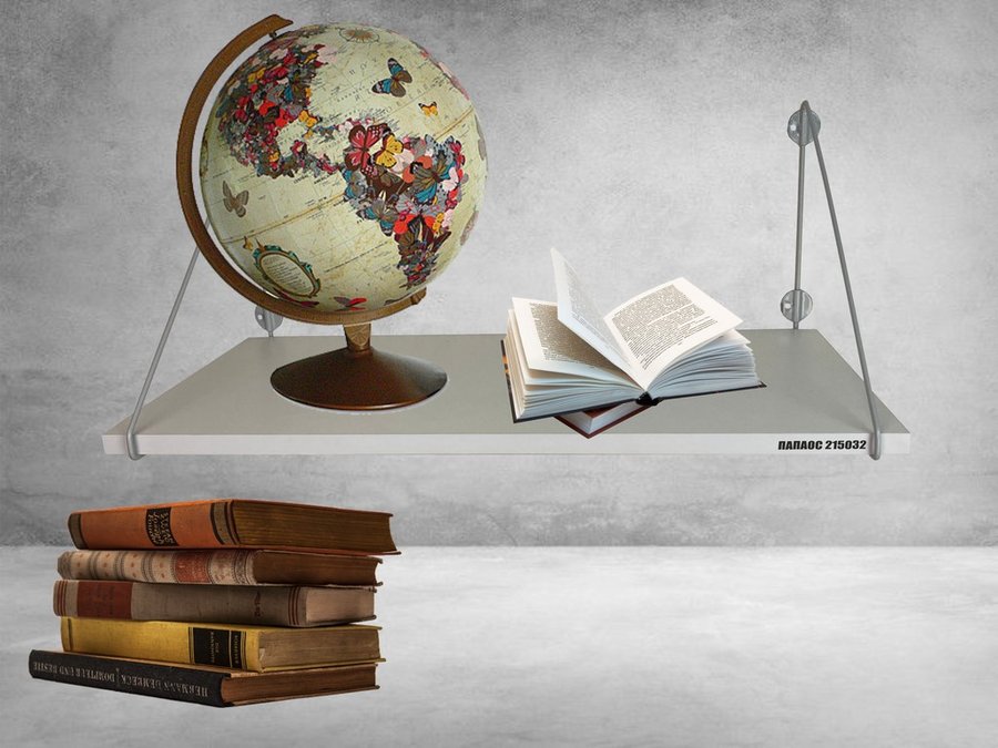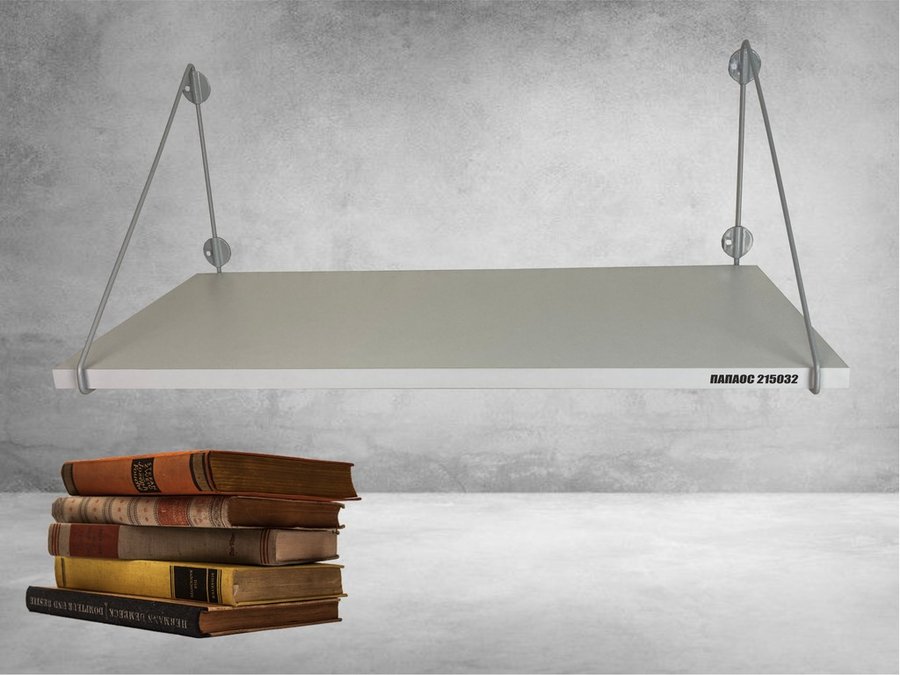 Полка для книг "КНИГОКРЕП 215032" высота 26 см размер 60х30 см серый и белый шагрень