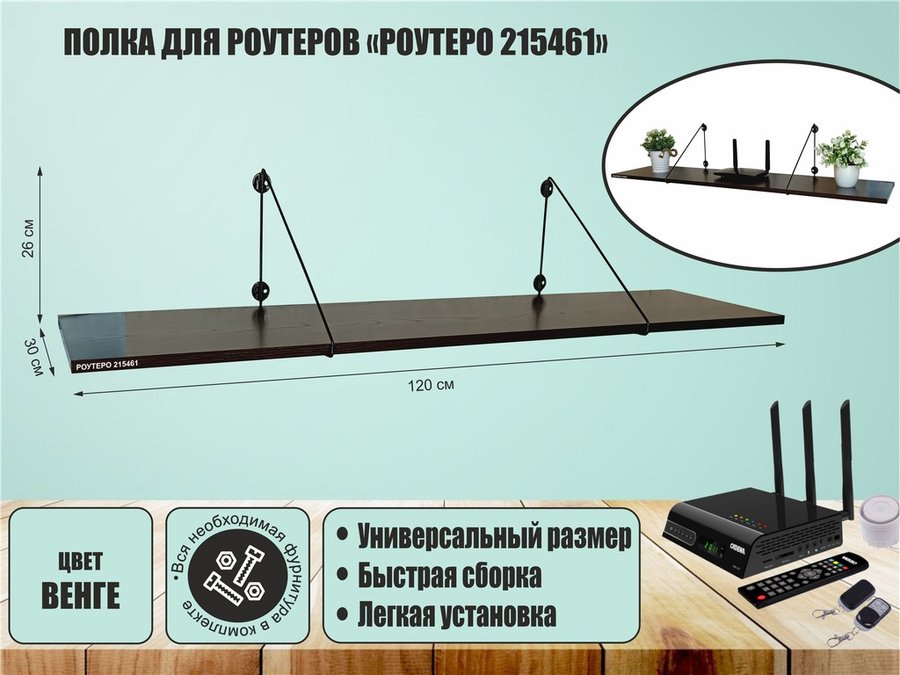 Полка для роутеров "РОУТЕРО 215461" высота 26 см размер 120х30 см черный и венге