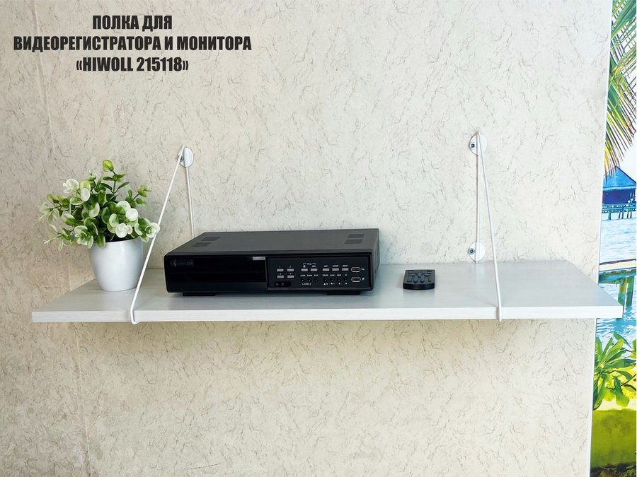 Полка для видеорегистратора и монитора "HIWOLL 215118" высота 26 см размер 90х30 см белый и сосна
