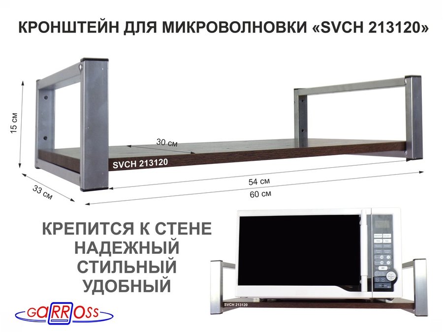Кронштейн для микроволновой печи, серебристый "SVCH 213120" высота 15 см, полка 60х30 см, венге