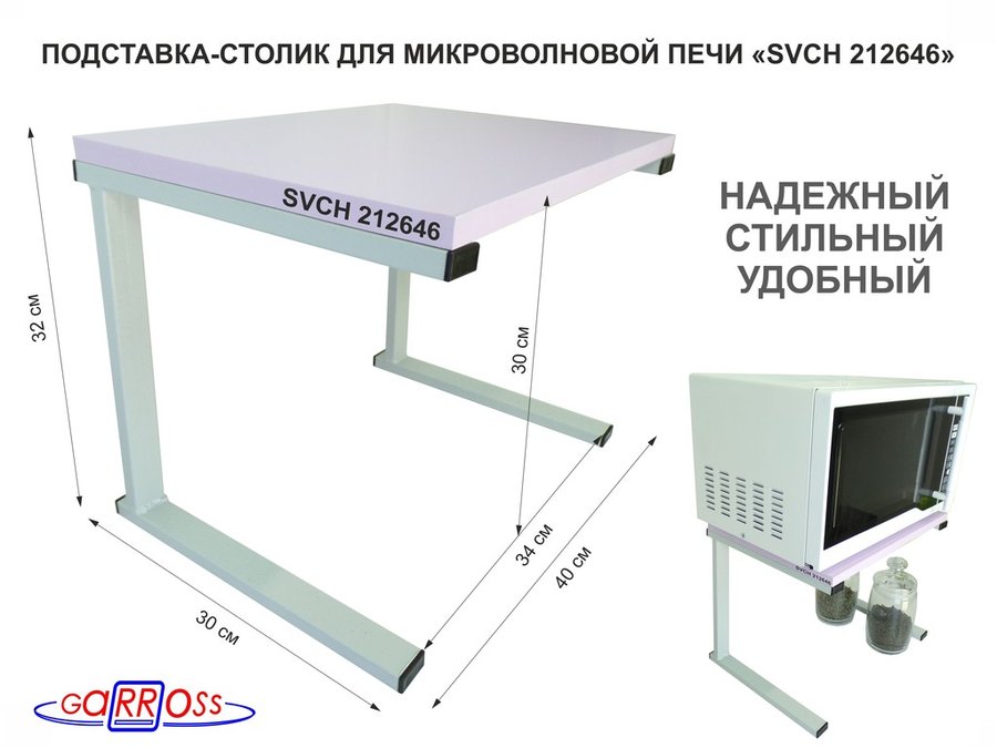 Подставка-столик для микроволновой печи, высота 32см, серый "SVCH 212646" полка 30х40см, лаванда