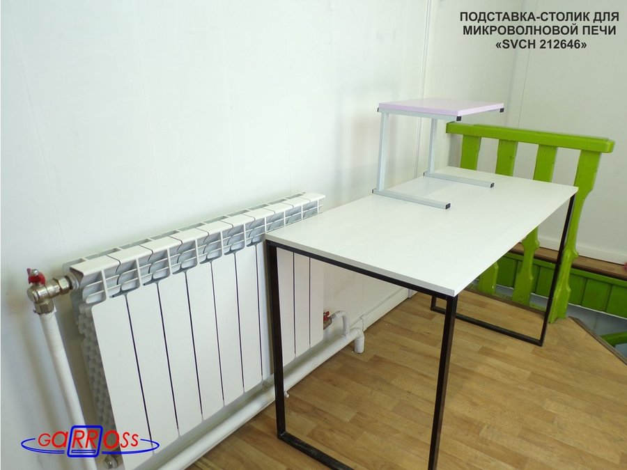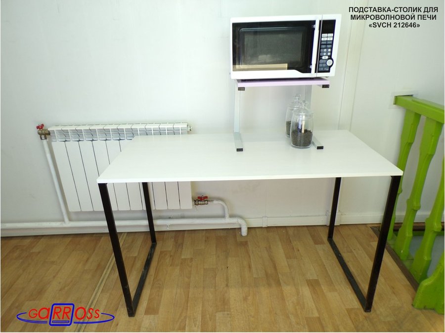 Универсальная подставка для микроволновой печи позволяет эффективно использовать место на столе.