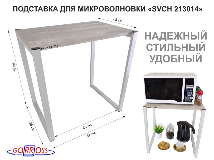 Подставка для микроволновки, серый, высота 55см "SVCH 213014" столешня 54х35 см, лофт